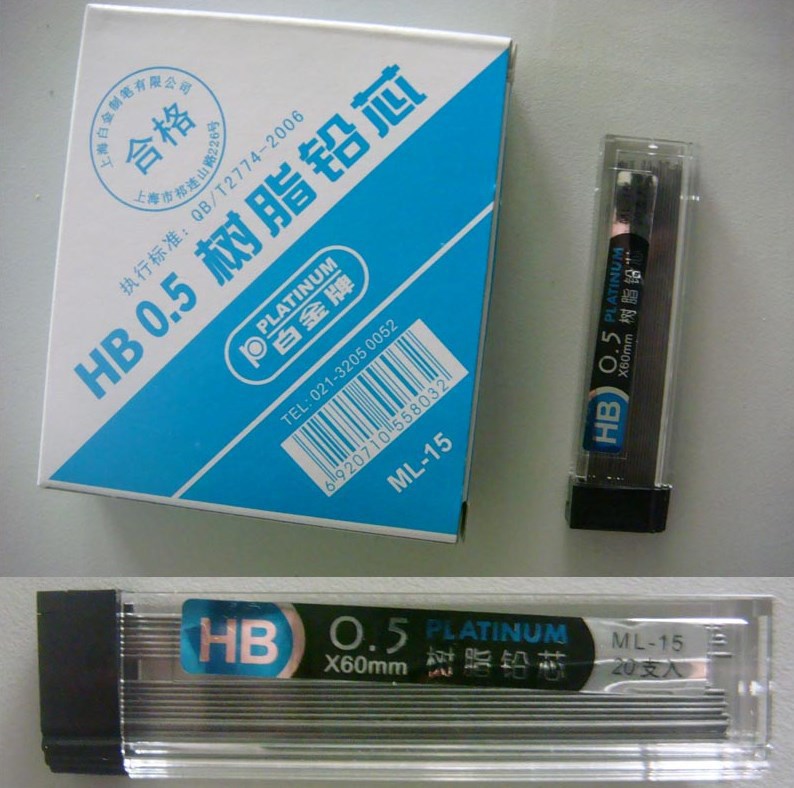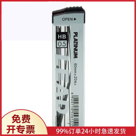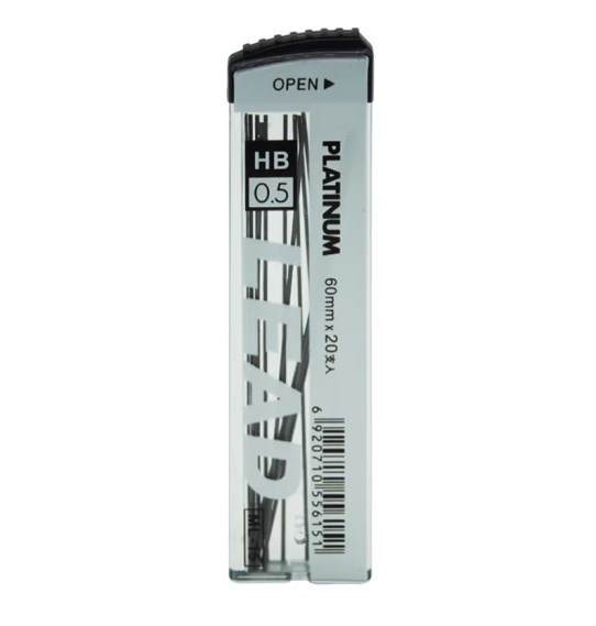 플래티넘 ML-15 리드 코어 수지 HB 자동 펜 0.5 리필 60mm 짧은 코어 20개 한 상자 학생 드로잉