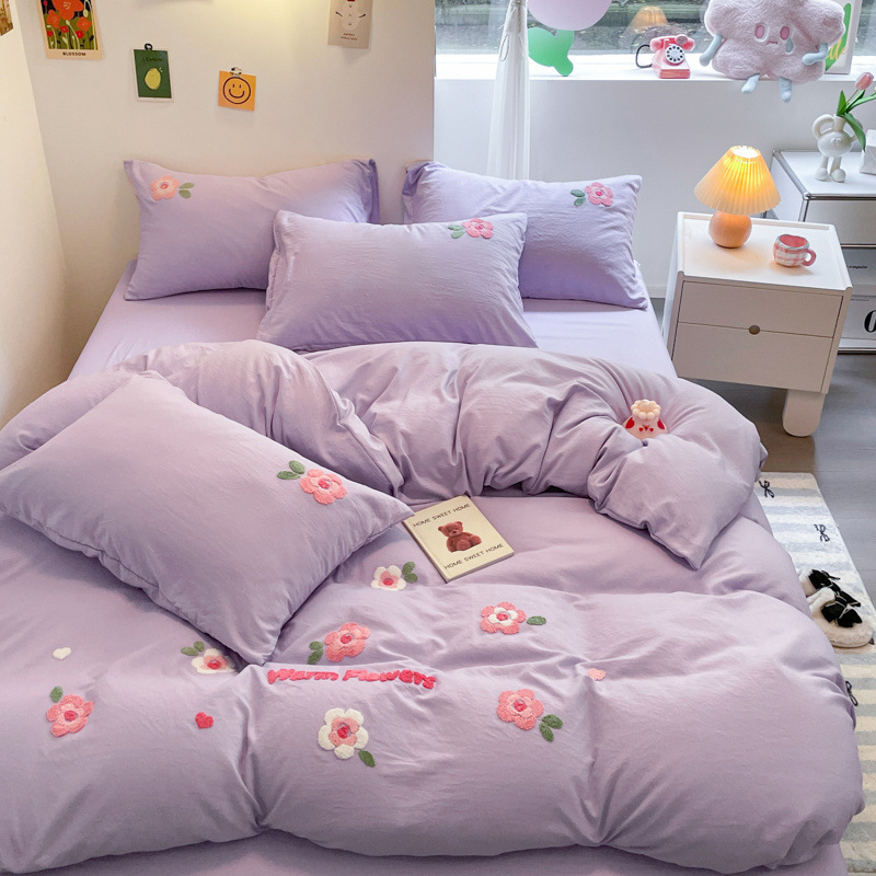 Ins 크림 타월 자수 면화 4 종 세트 클래스 소녀의 심장 학생 기숙사 침대 시트 3 종 세트 만화 퀼트 커버스토어 가기