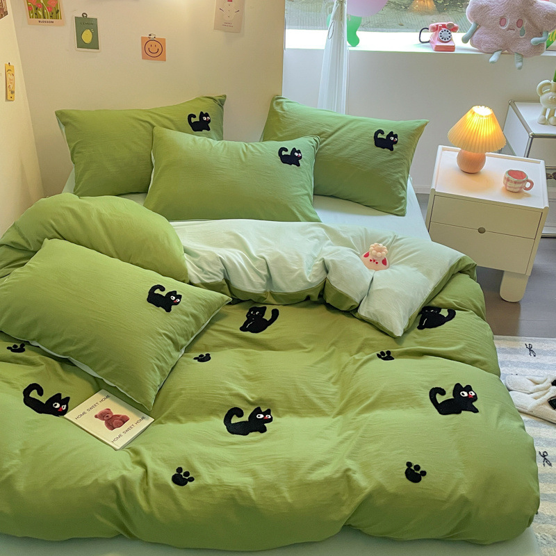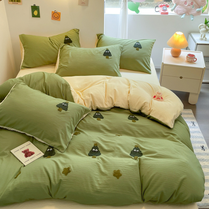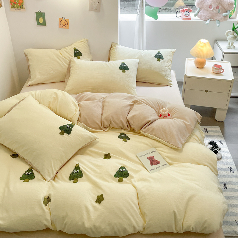 Ins 크림 타월 자수 면화 4 종 세트 클래스 소녀의 심장 학생 기숙사 침대 시트 3 종 세트 만화 퀼트 커버