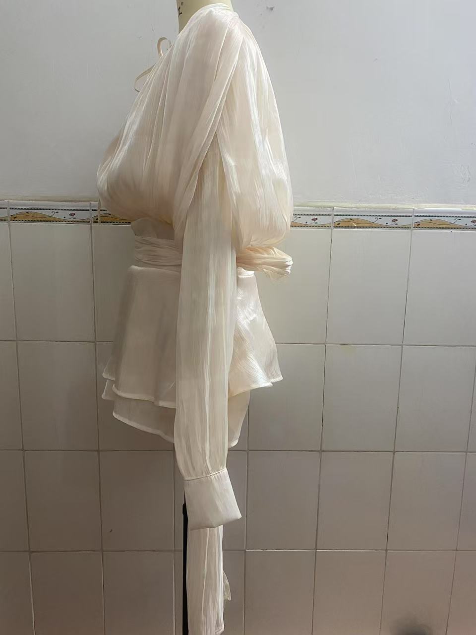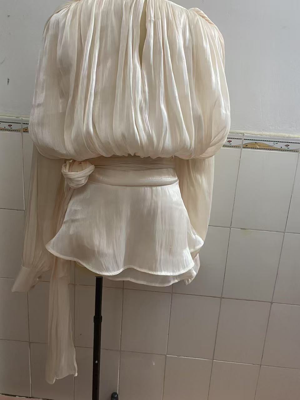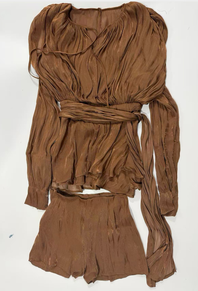 2025 프랑스 유럽과 미국의 국경 퍼프 슬리브 프릴 스커트 투피스 세트 새로운 주름 디자인 짧은 드레스스토어 가기