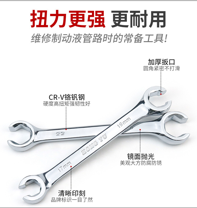 M & 더블 헤드 육각형 개방형 오일 파이프 렌치 뻣뻣한 자동차 브레이크 오일 회로 제거 도구 6-27m