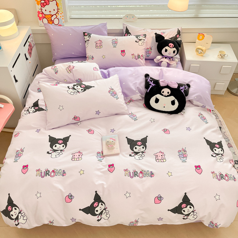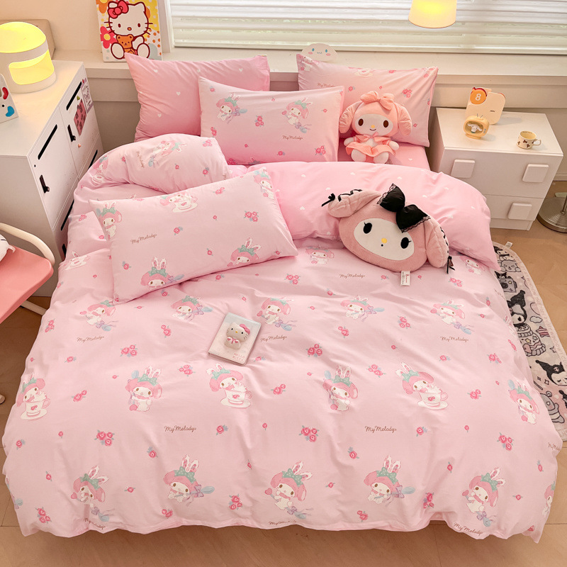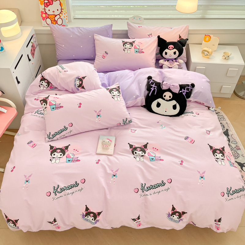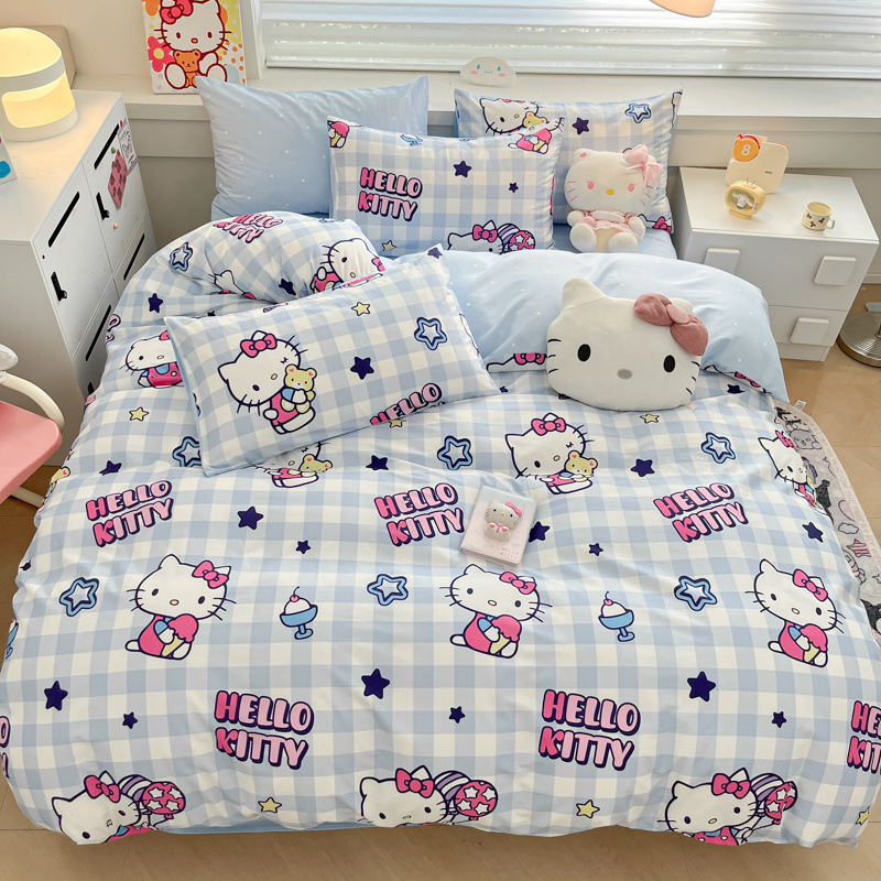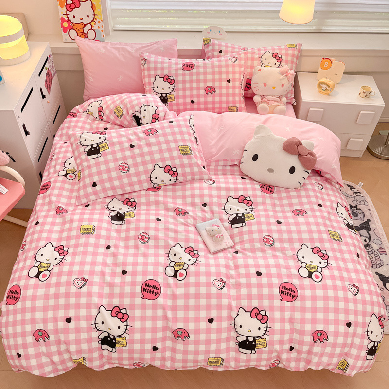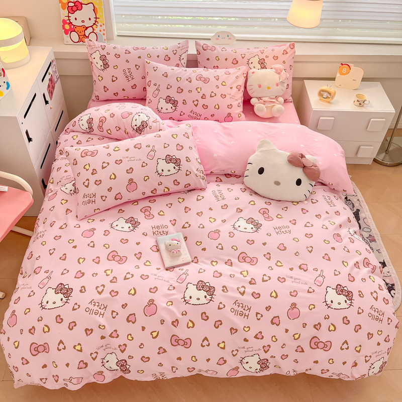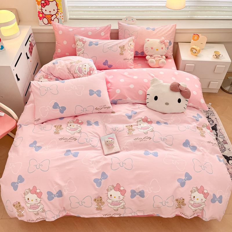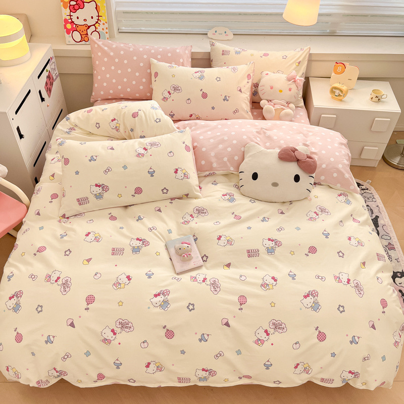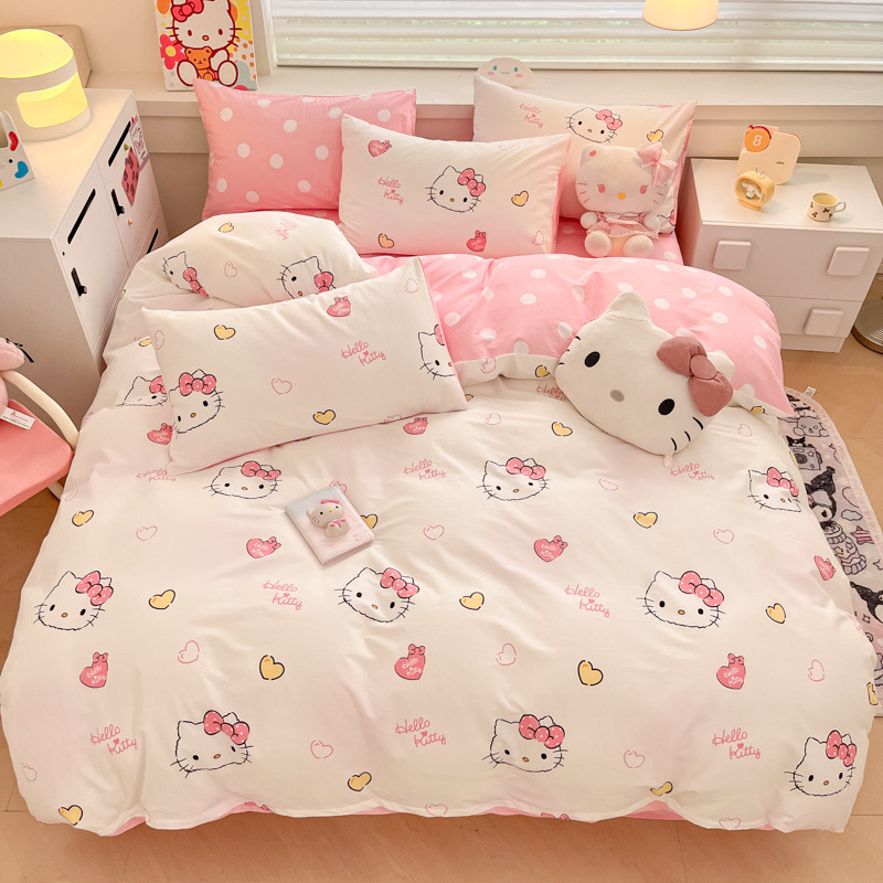 국경 간 헬로 키티 퓨어 코튼 4 피스 세트 코튼 산리오 만화 쿨로 미 침대 모자 학생들을위한 3 피스 세트스토어 가기
