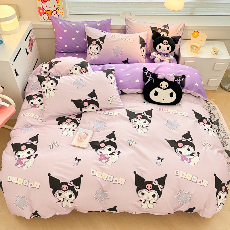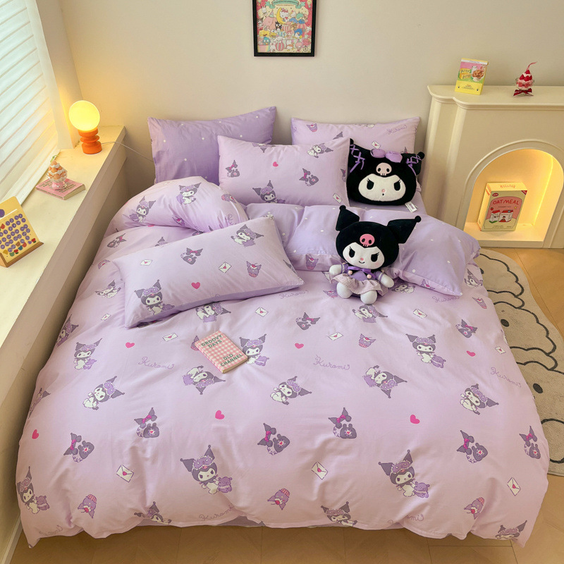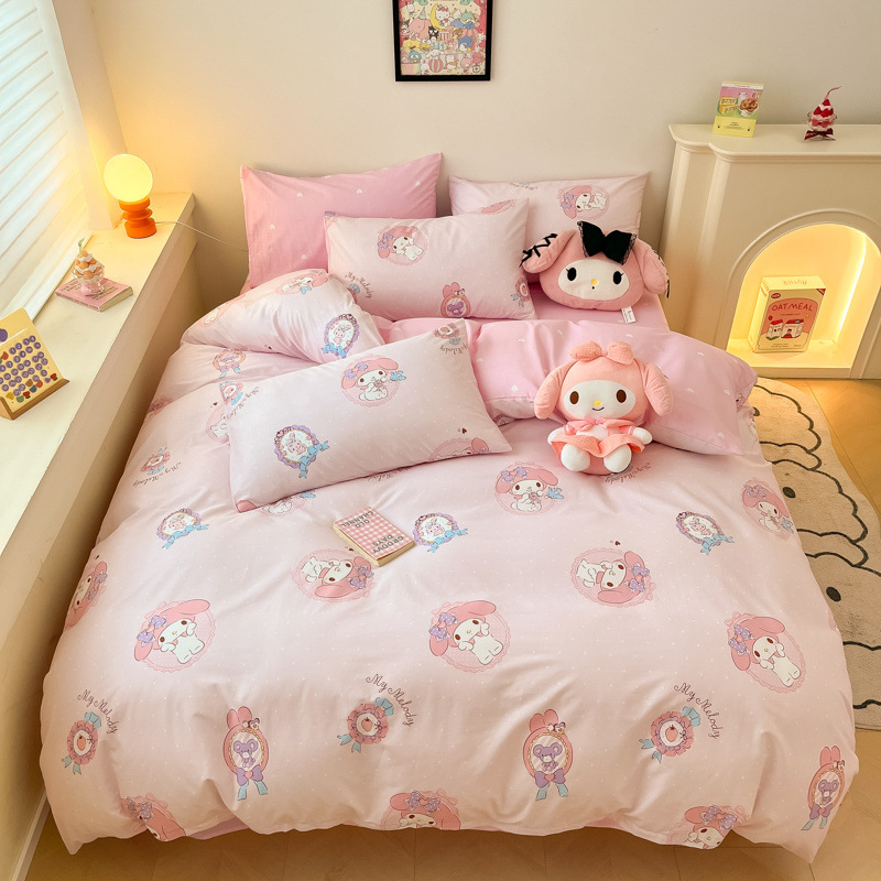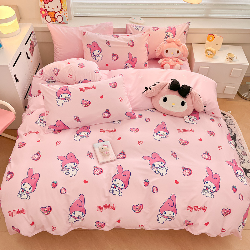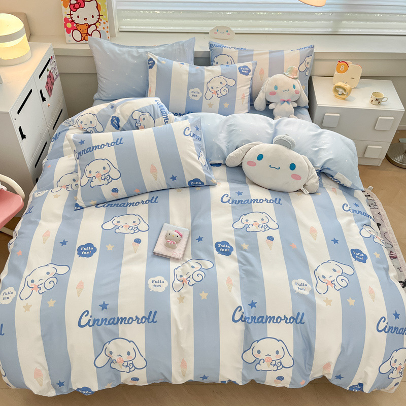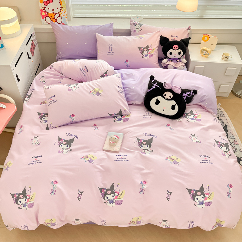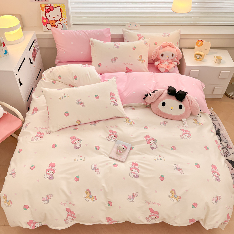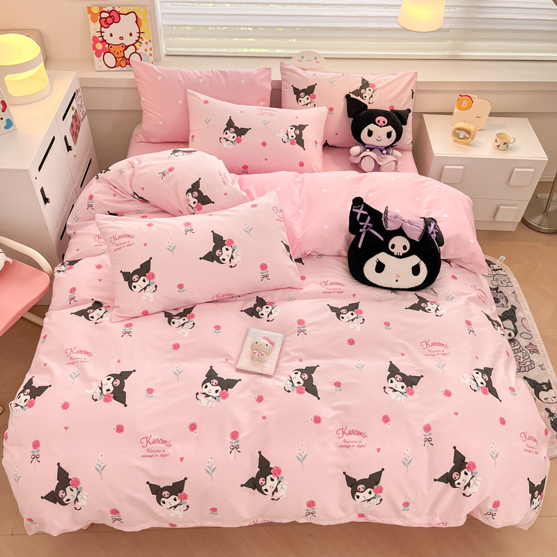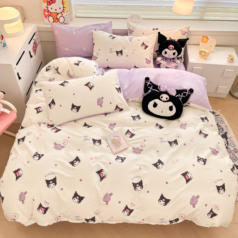 국경 간 헬로 키티 퓨어 코튼 4 피스 세트 코튼 산리오 만화 쿨로 미 침대 모자 학생들을위한 3 피스 세트스토어 가기