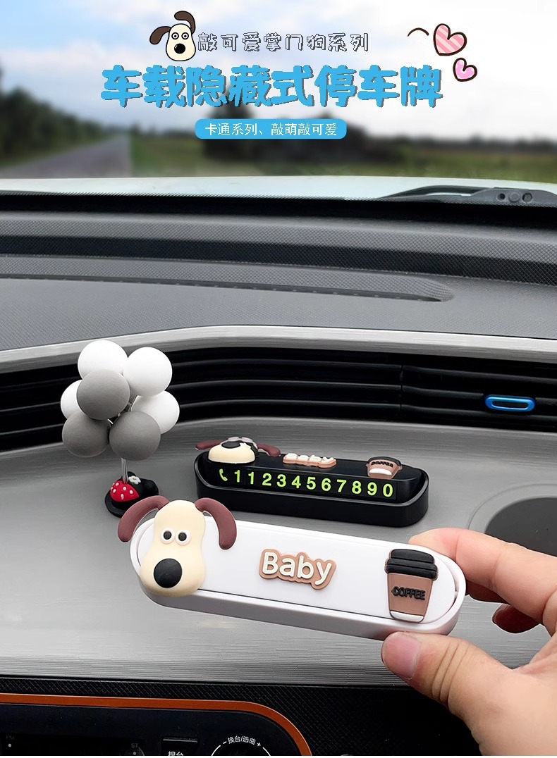 손잡이 개 자동차 임시 주차 자동차 이동 자동차 전화 번호 플레이트 창조적 인 움직이는 자동차 주차 장식품 여성