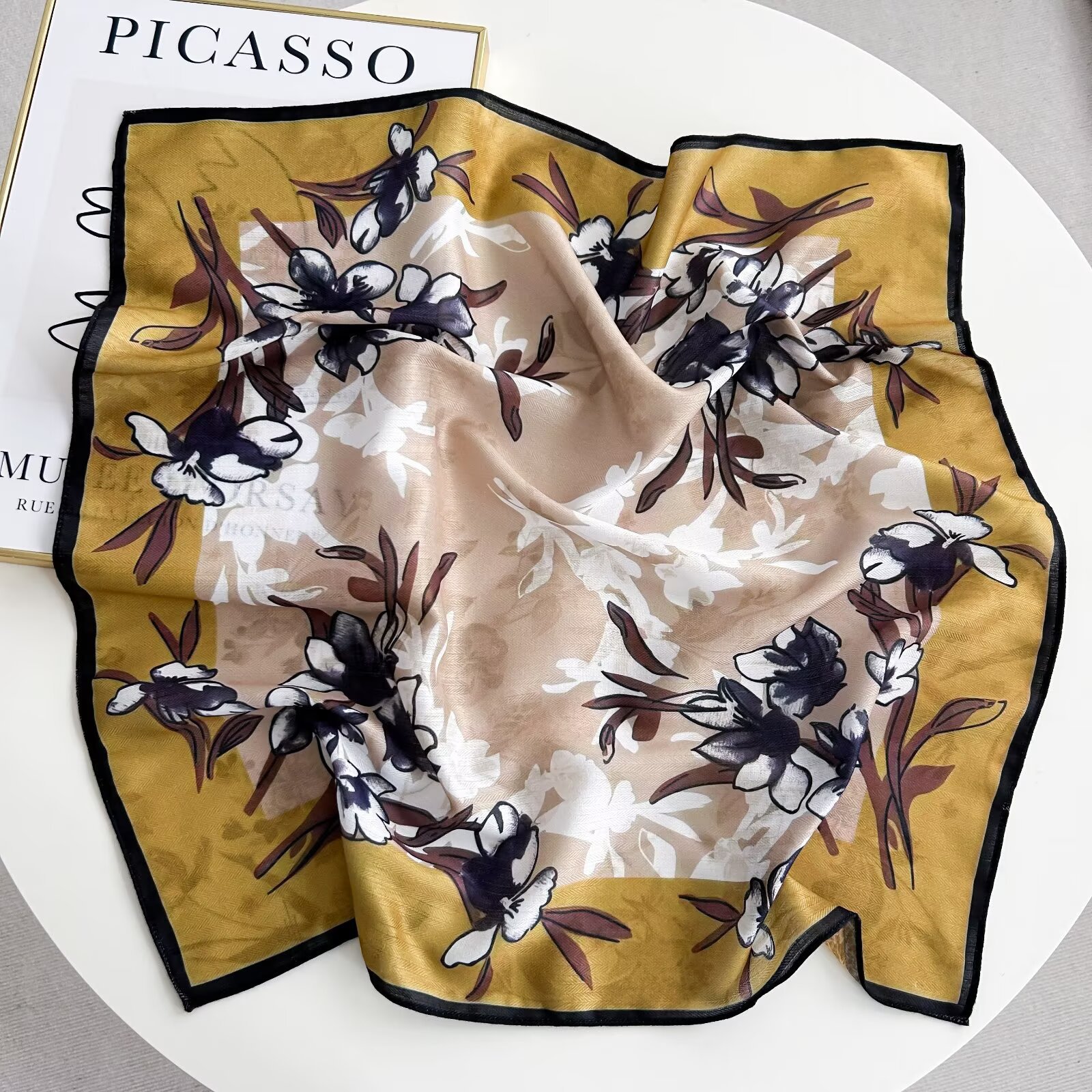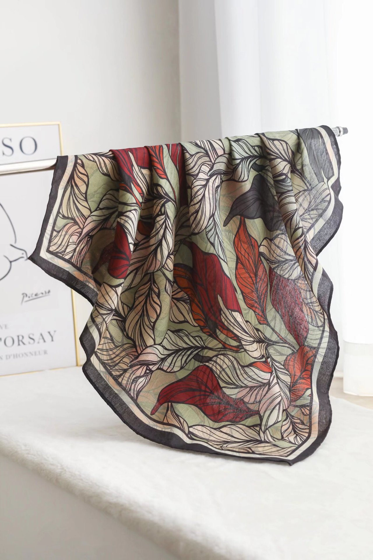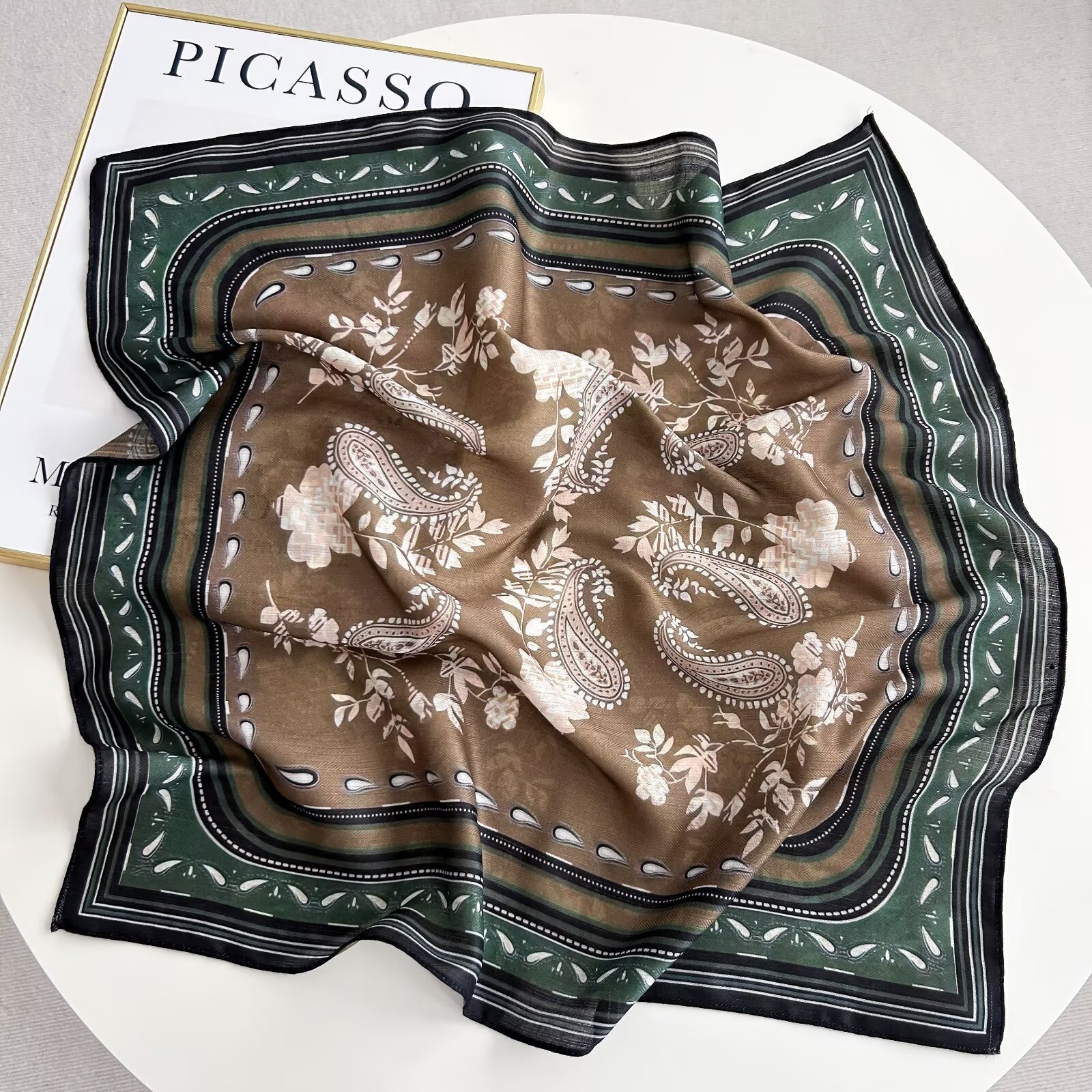인쇄 된 새로운 봄과 여름 인쇄 유행 잎 작은 광장 스카프 우아한 모든 일치 목 얇은 따뜻한 목 보호 스카프