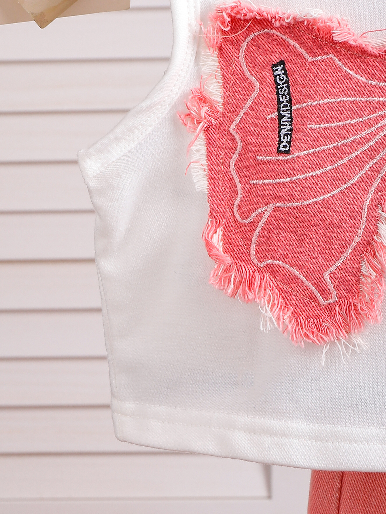 아마존 국경 대외 무역 소녀 여름 새로운 세트 패치 나비 민소매 탑 홀 데님 바지