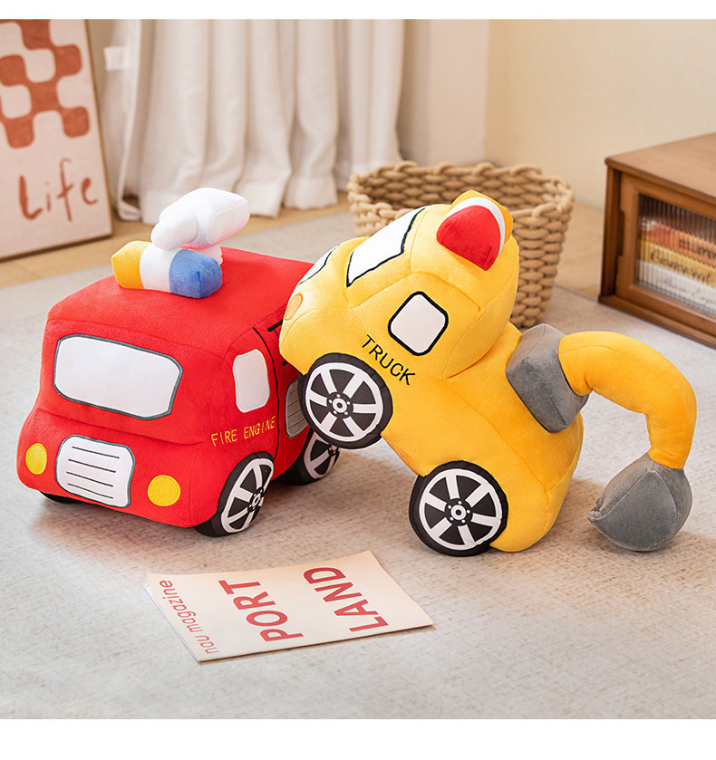 만화 소방차 인형 봉제 장난감 소년 잠자는 베개 인형 인형 어린이 건설 차량 헝겊 인형 굴삭기스토어 가기