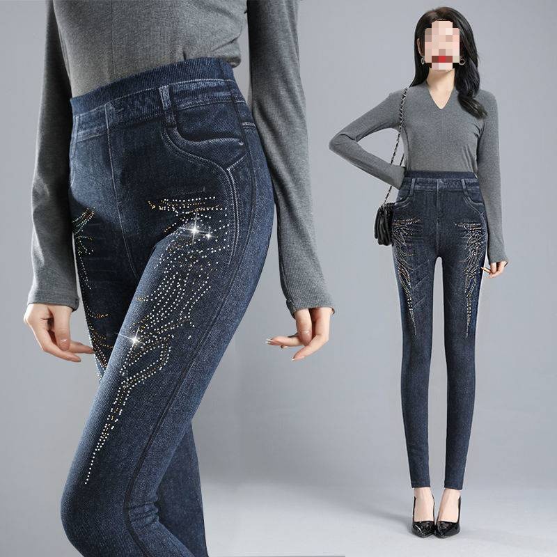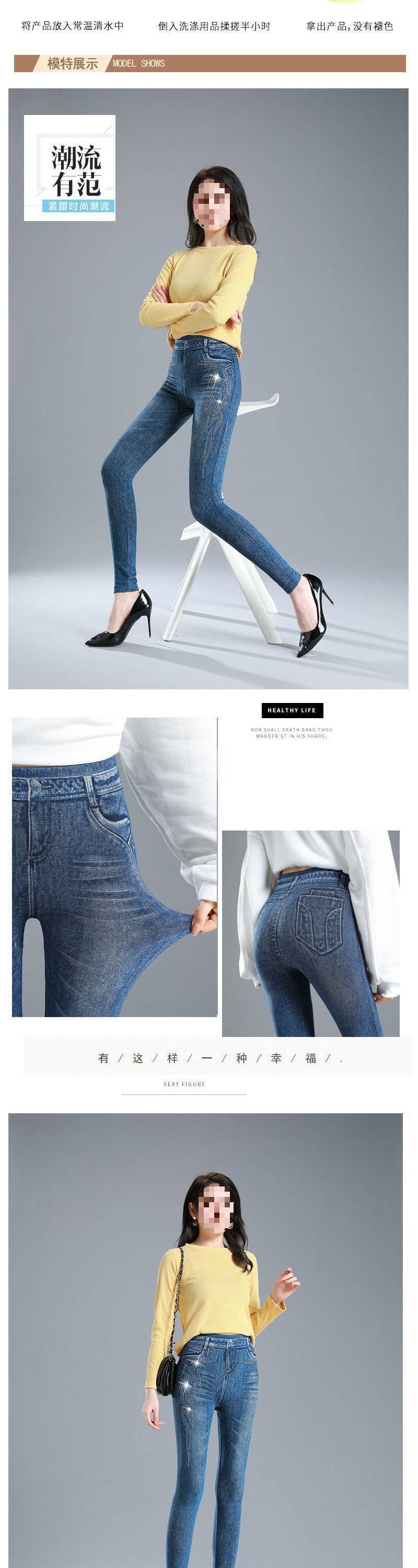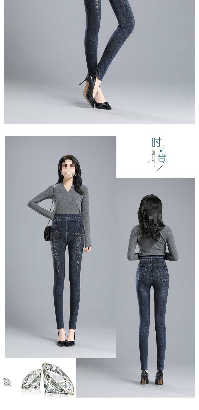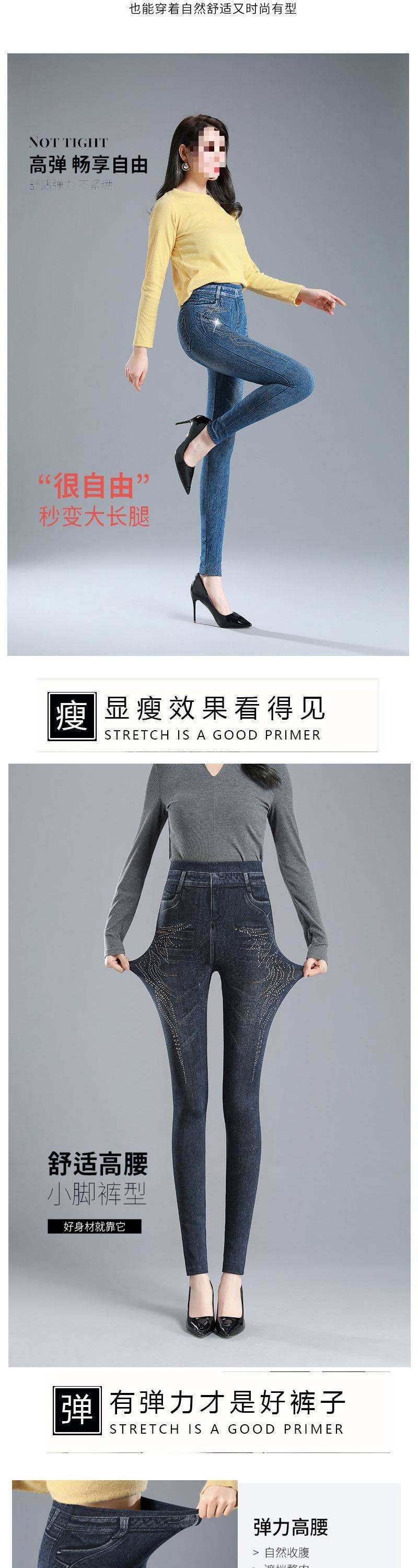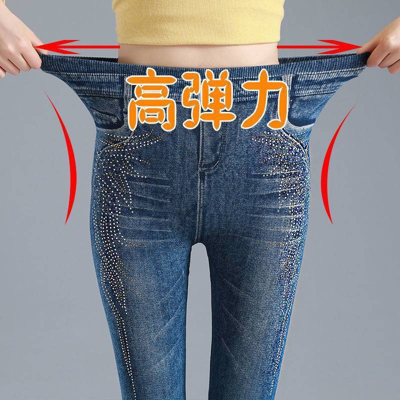 春秋新款 仿牛仔打底裤莫代尔烫钻女裤 高腰大码女士外穿打底裤厂스토어 가기
