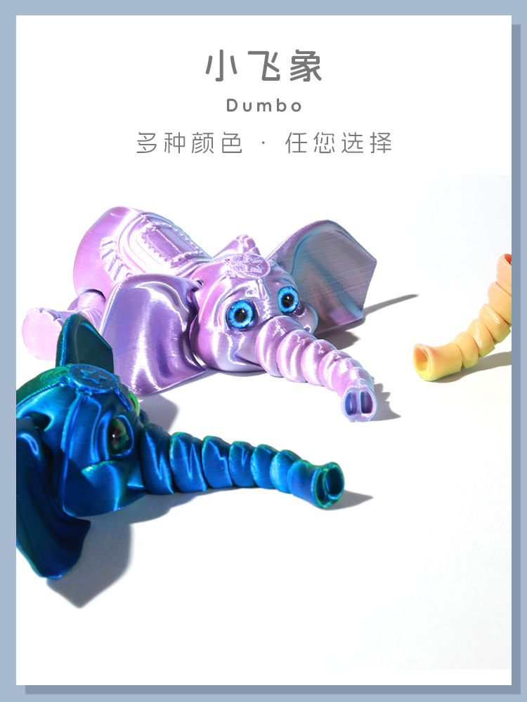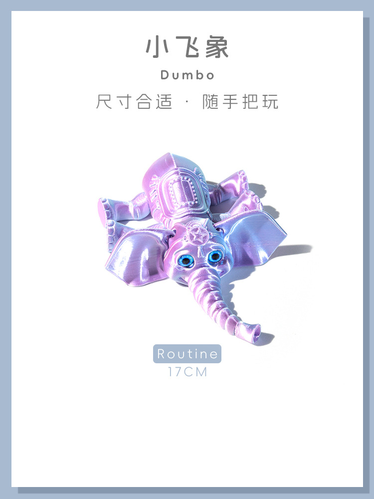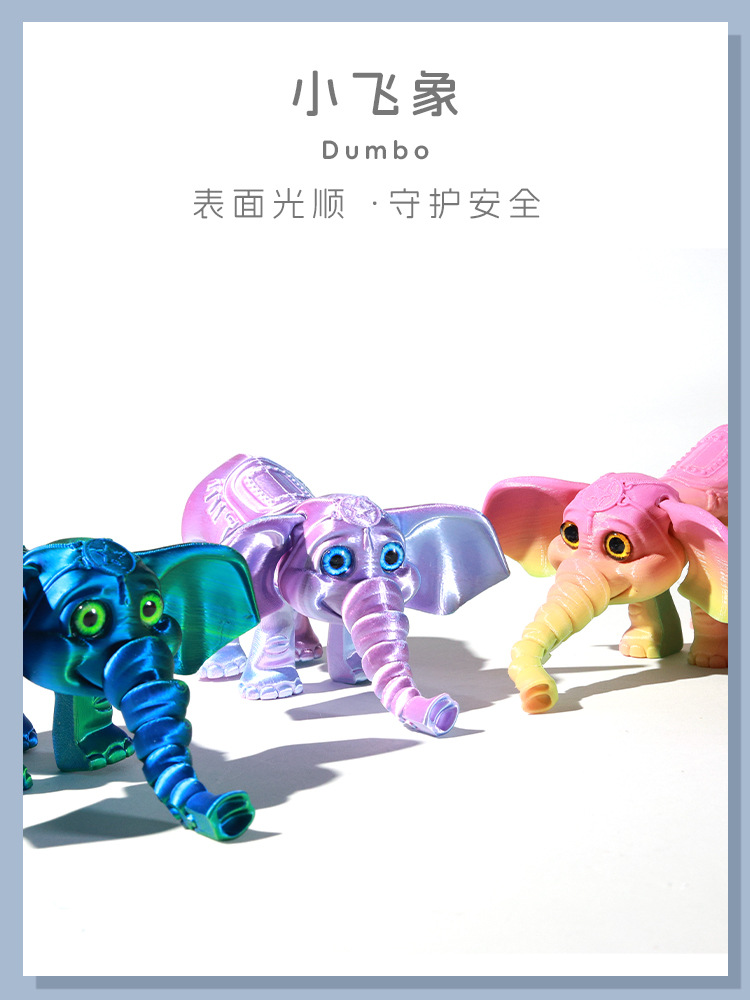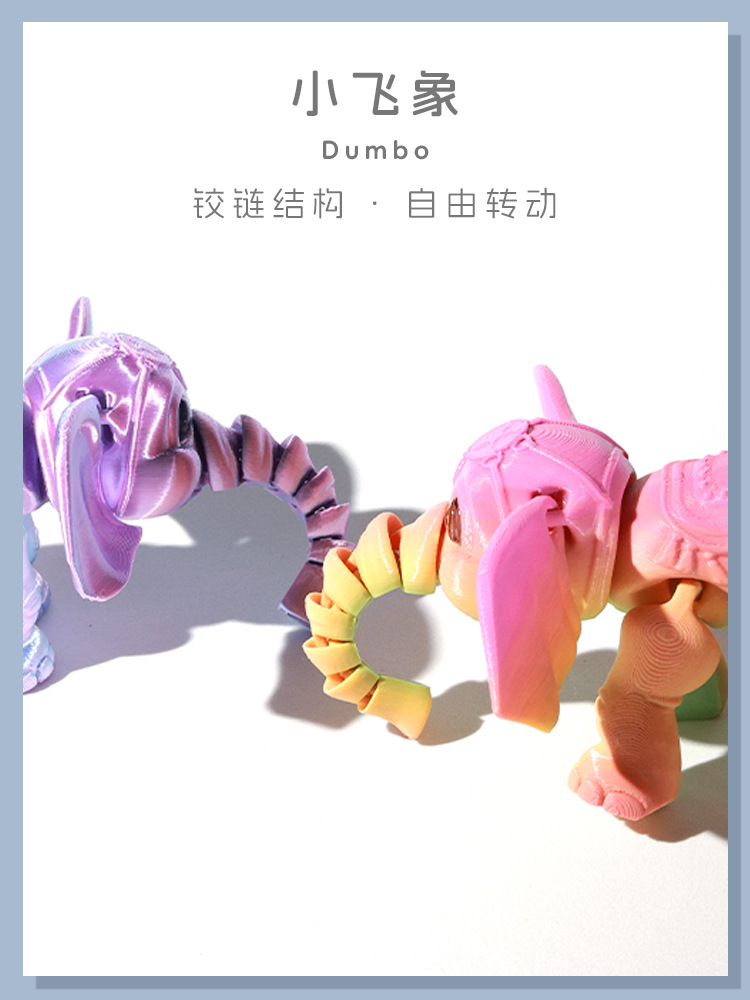 국경 3D 인쇄 귀여운 덤보 만화 코끼리 움직일 수있는 사지 관절 어린이 선물 장난감 모델 장식품스토어 가기