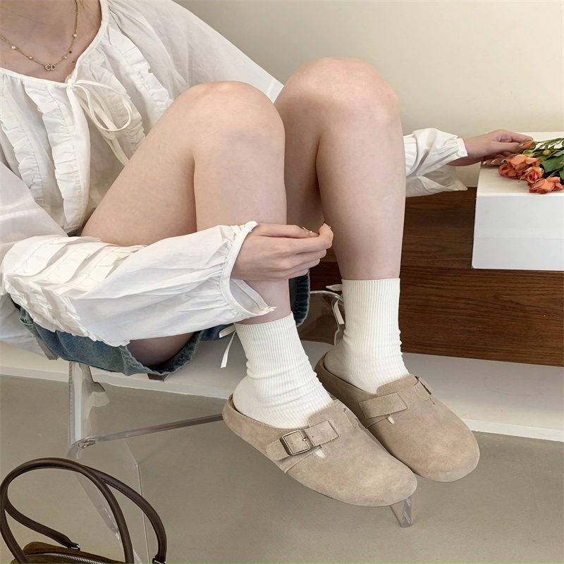 2025 새로운 두꺼운 밑창 Birkenn 하프 슬리퍼 Buguwu 일본식 큰 발가락 신발 여성 정품 가죽 Baotou 슬리퍼스토어 가기