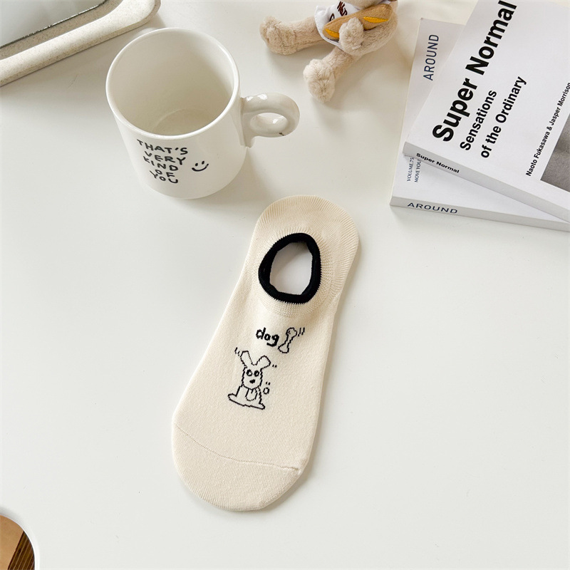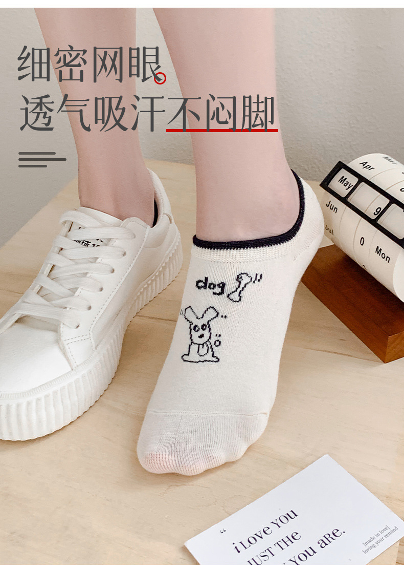 귀여운 강아지 보트 양말 여성용 순수 면 미끄럼 방지 양말 여름 얇은 양말 여성용 얕은 입 짧은 양말 여름