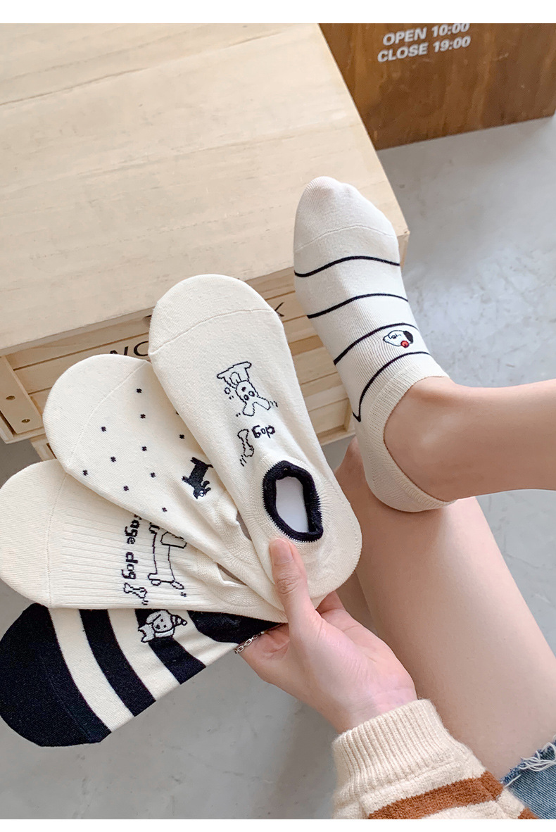 귀여운 강아지 보트 양말 여성용 순수 면 미끄럼 방지 양말 여름 얇은 양말 여성용 얕은 입 짧은 양말 여름스토어 가기