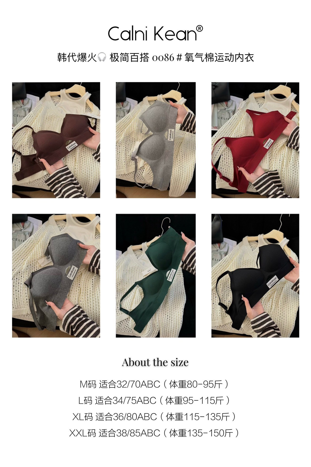Calnikean 가을과 겨울 새로운 0086 # 산소 면화 간단한 추적없는 스포츠 속옷 여성 처짐 방지 브래지어 수집스토어 가기