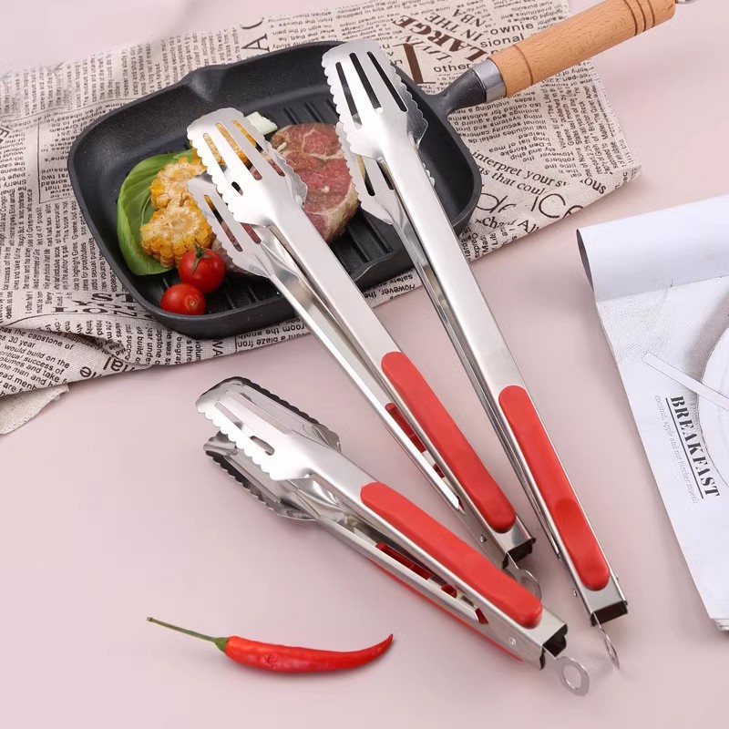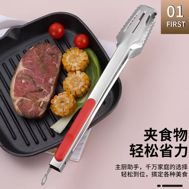 빵 클립 스테인레스 스틸 레드 핸들 식품 클립 3 라인 중공 클립 상업용 식품 클립 바베큐 클립 음식 클립 도매 클립