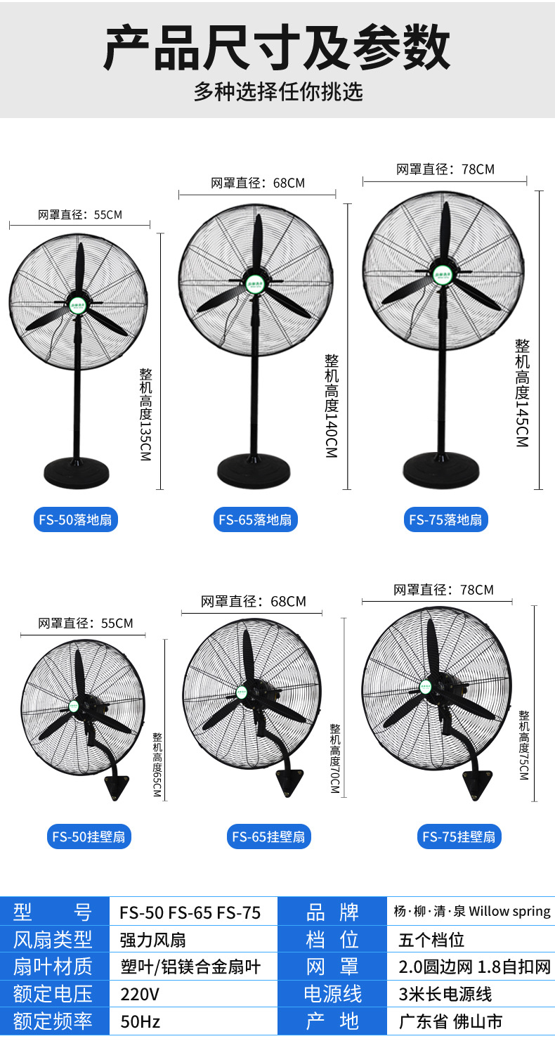 • FS-50 플로어 팬 플라스틱 블레이드 6단 구리 모터