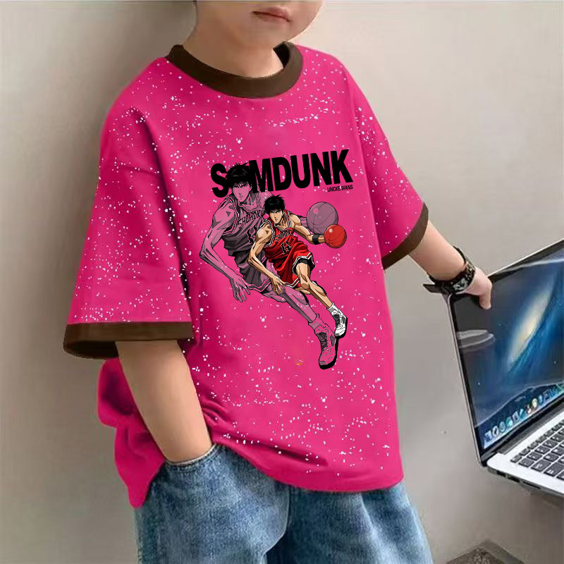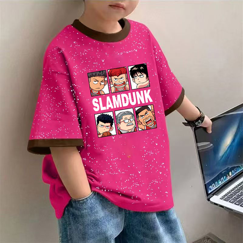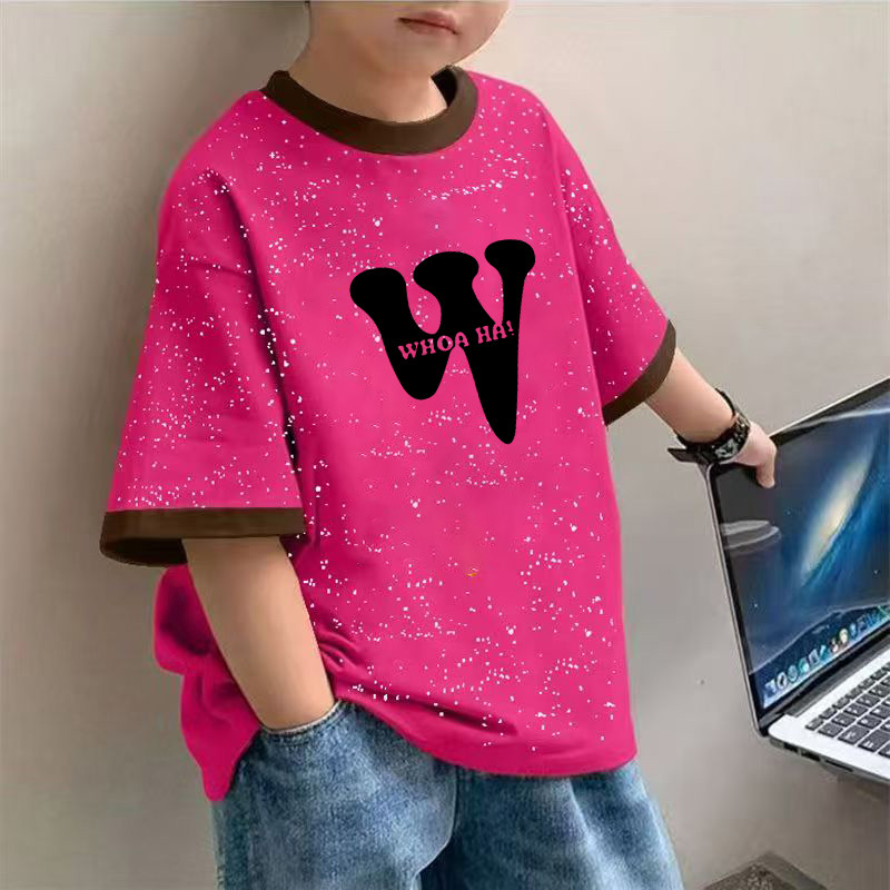 2025 여름 새로운 소년 면화 넥타이-염색 반팔 티셔츠 아기 캐주얼 올 매치 만화 인쇄베이스 탑스토어 가기