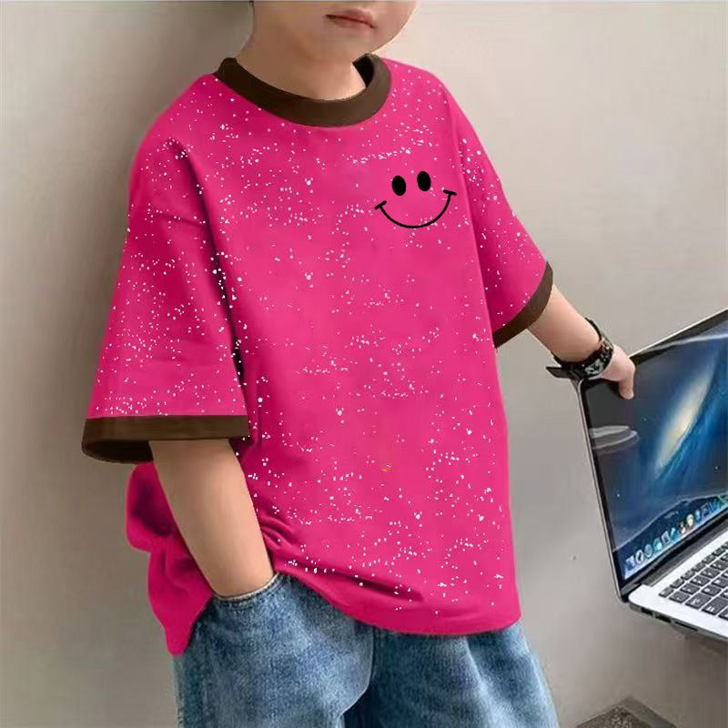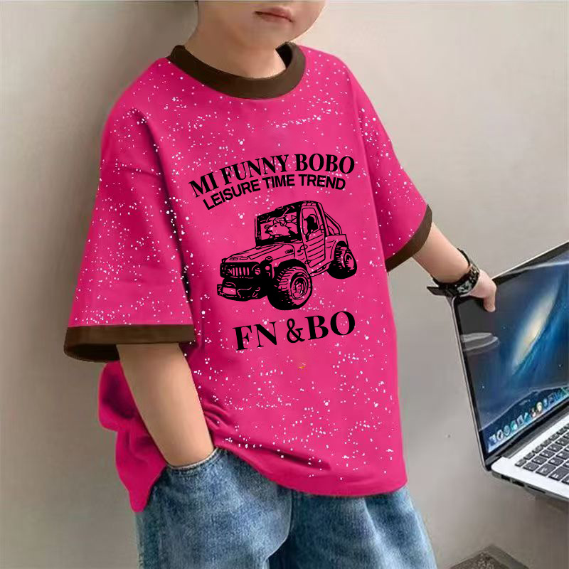 2025 여름 새로운 소년 면화 넥타이-염색 반팔 티셔츠 아기 캐주얼 올 매치 만화 인쇄베이스 탑