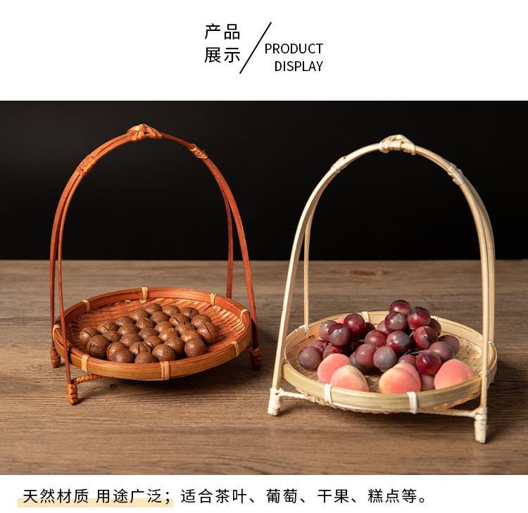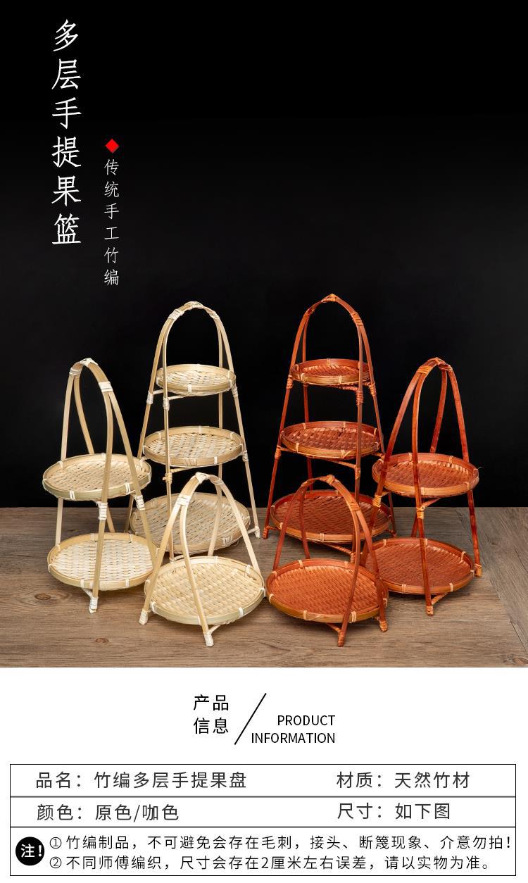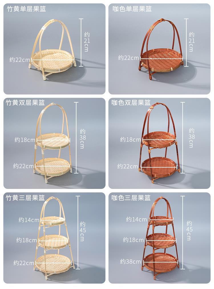 수제 짠 과일 트레이 다층 상쾌한 트레이 디스플레이 스탠드 대나무 짠 바구니 호텔 과자 바구니 간식 과일