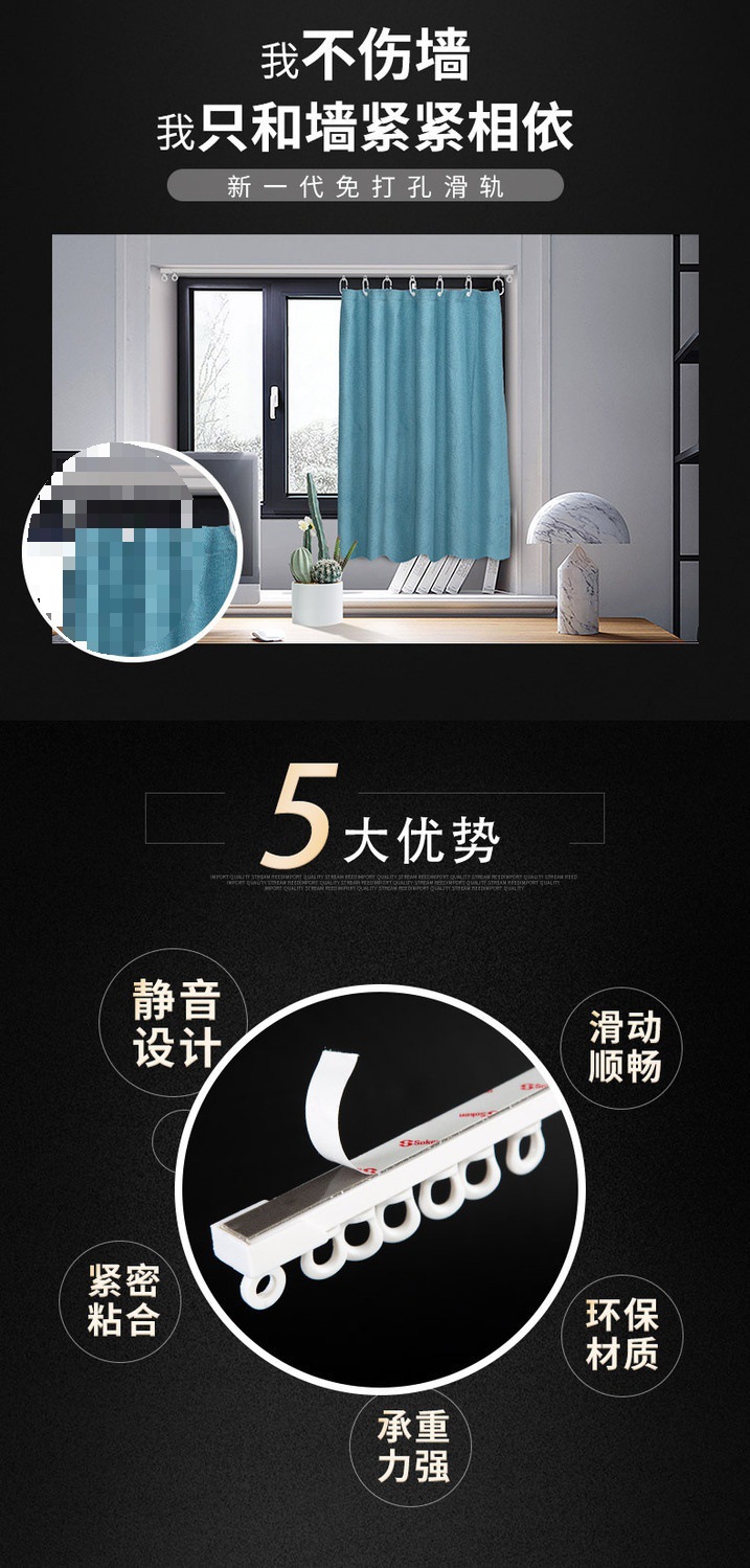 펀치없는 커튼 트랙 슬라이드 레일 후크 형 가이드 레일 커튼로드 침대 커튼 접착제 못없는 슬라이드 풀리 모노레일