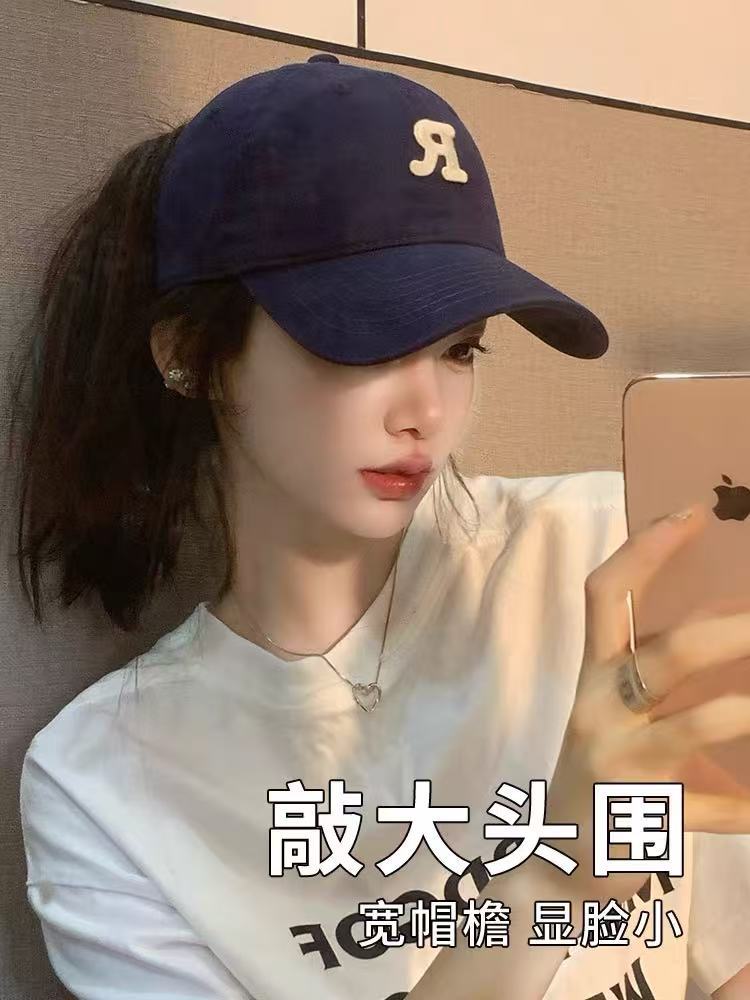 어린이를위한 큰 머리 야구 모자 증가 및 심화 얼굴 한국어 버전 올 매치 레터 R 남성용 자수 모자스토어 가기