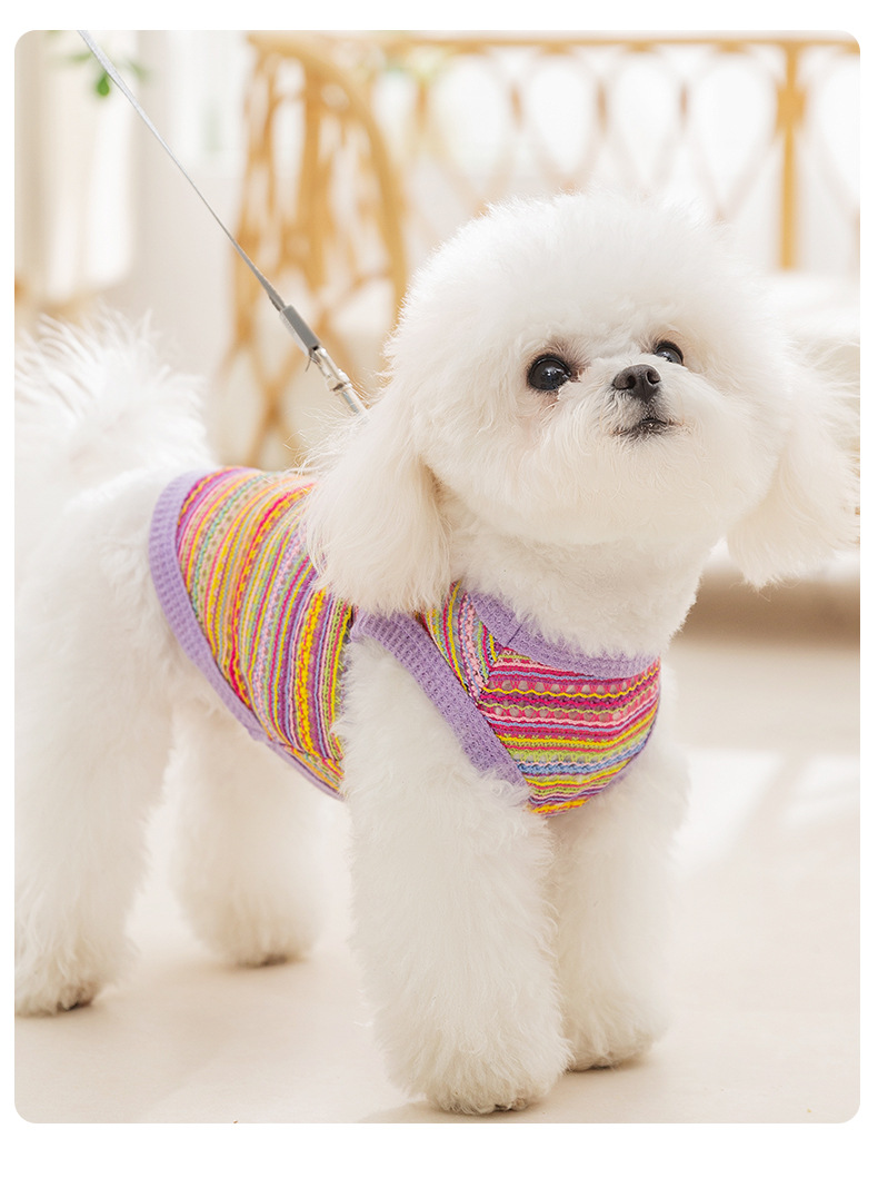 여름 개 Boho 스타일 여러 가지 빛깔이 울려 조끼 테디 비터 팬더 키티 작은 개 애완 동물 옷