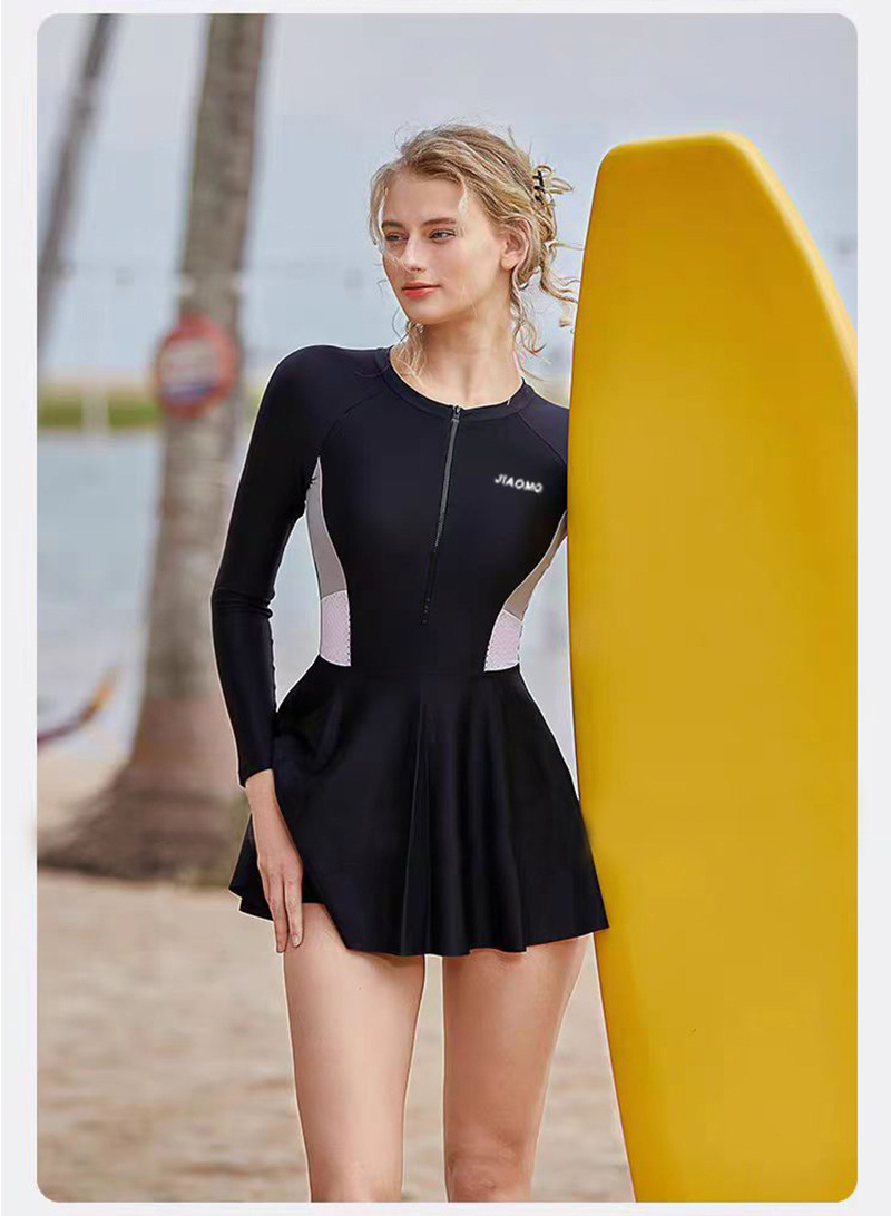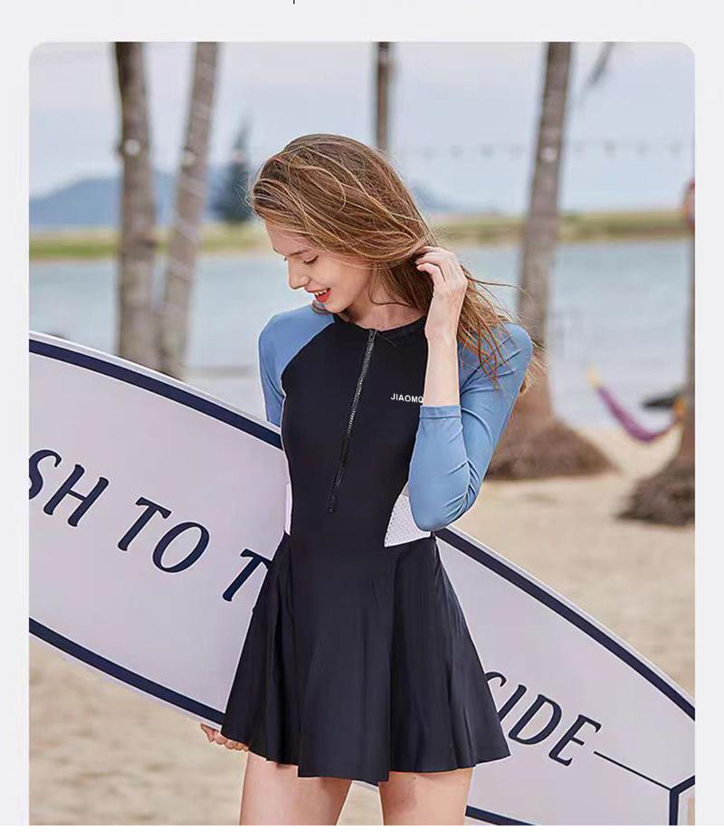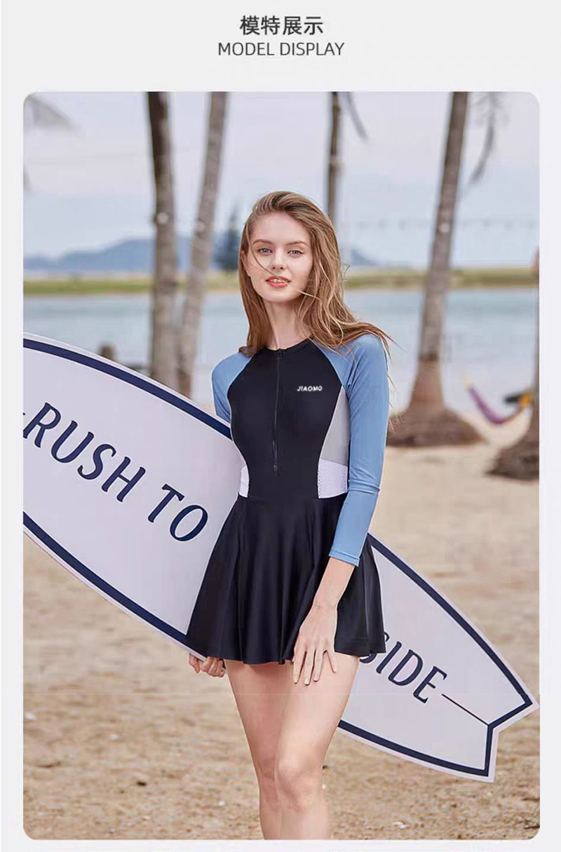 수영복 여성 원피스 긴소매 한국 패션 매칭 스커트 보수적 슬림 선 스크린 학생 온천 수영복 도매