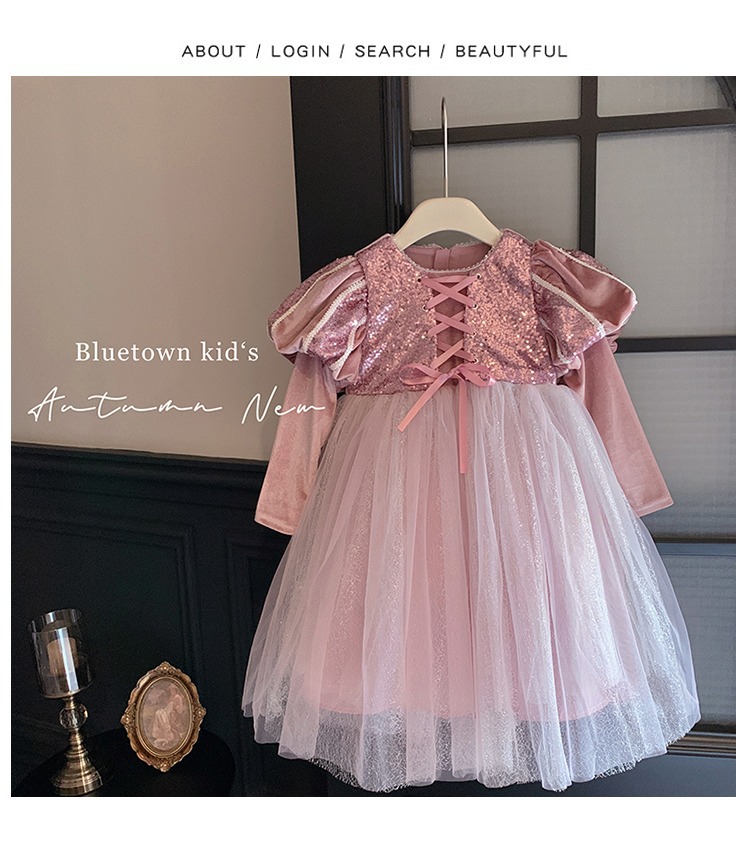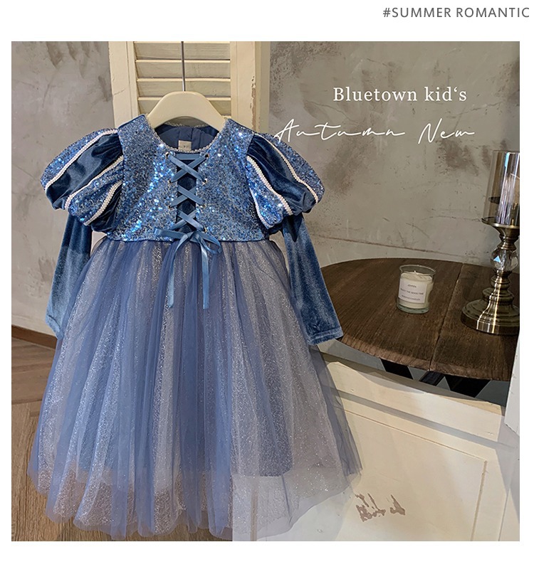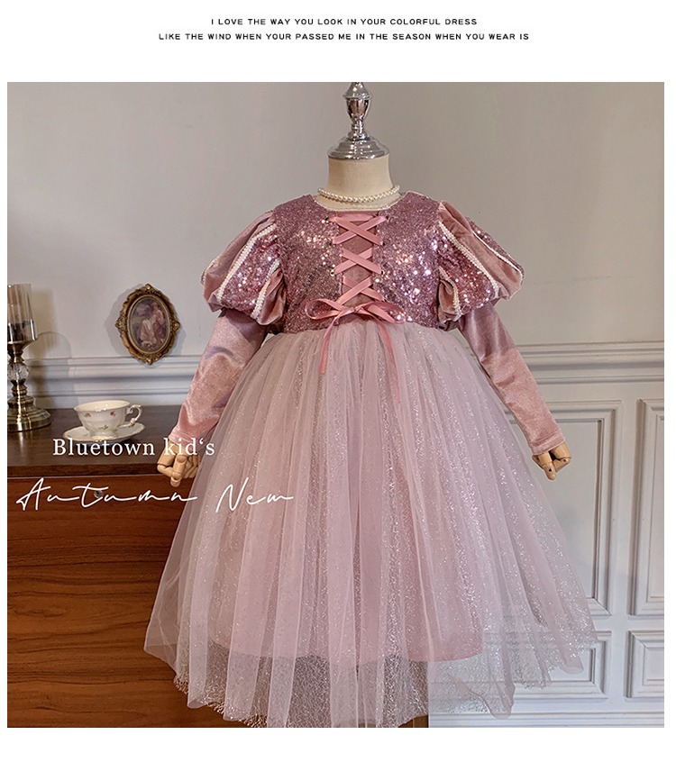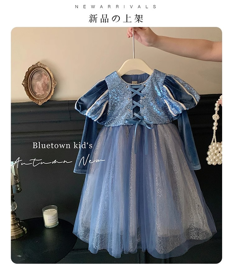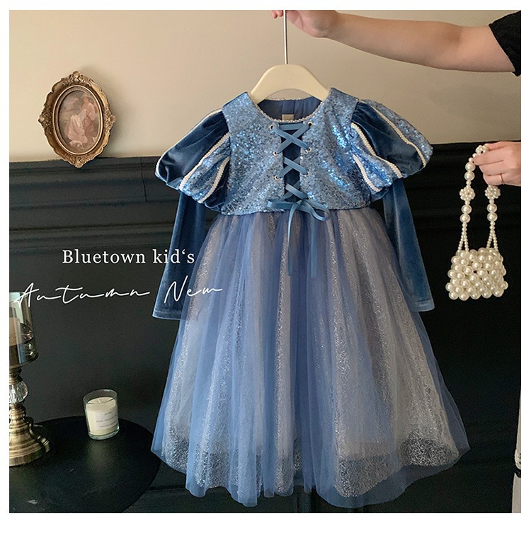 여자 공주 원피스 가을과 겨울 2025 새로운 어린이 긴 소매 스타일 원피스 긴 원피스 생일 원피스스토어 가기