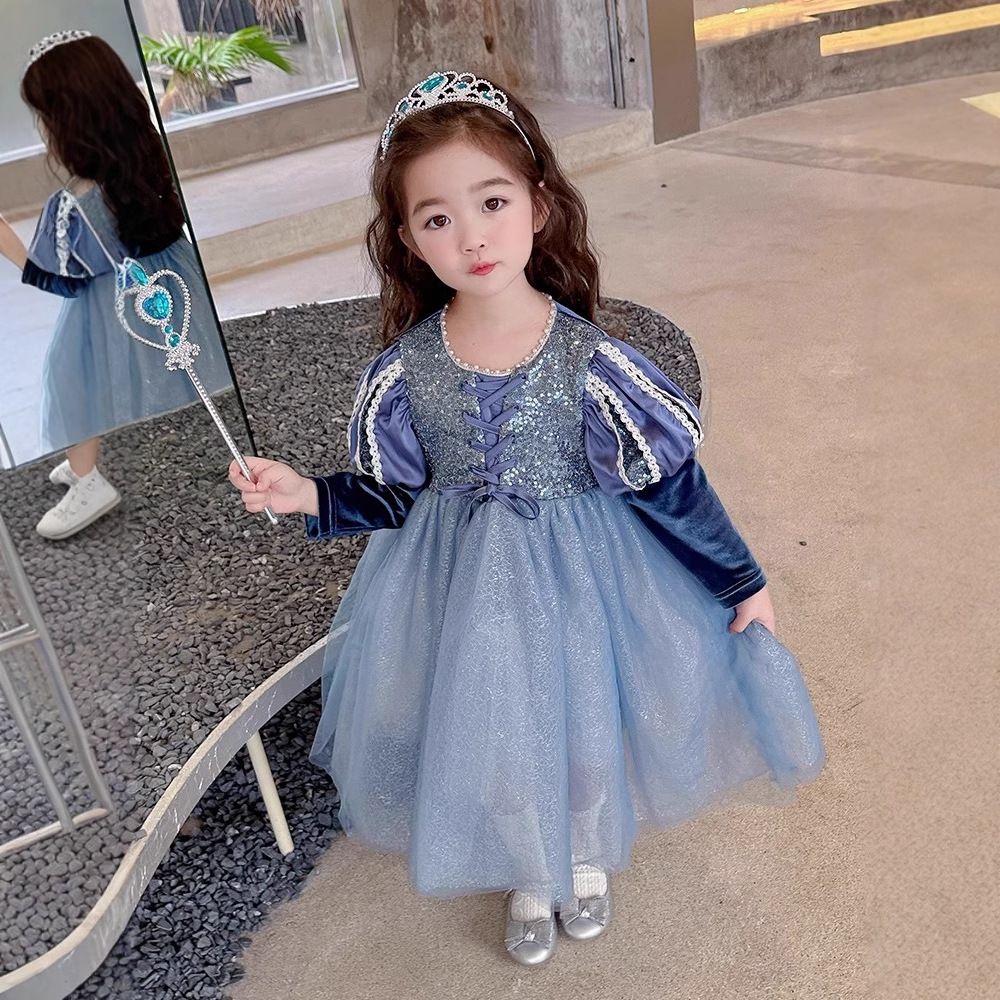 여자 공주 원피스 가을과 겨울 2025 새로운 어린이 긴 소매 스타일 원피스 긴 원피스 생일 원피스