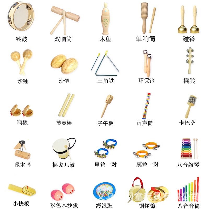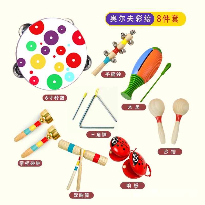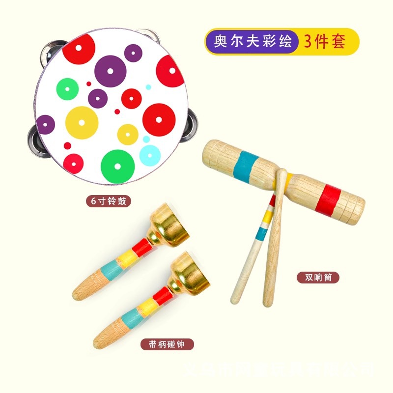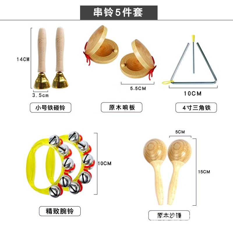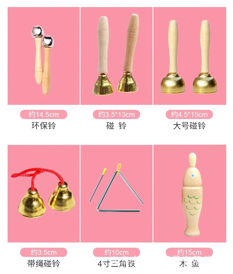 유치원 Orff Percussion 어린이 음악 교육 원조 트라이앵글 링 보드 샌드 해머 탬버린 더블 링 드럼 벨