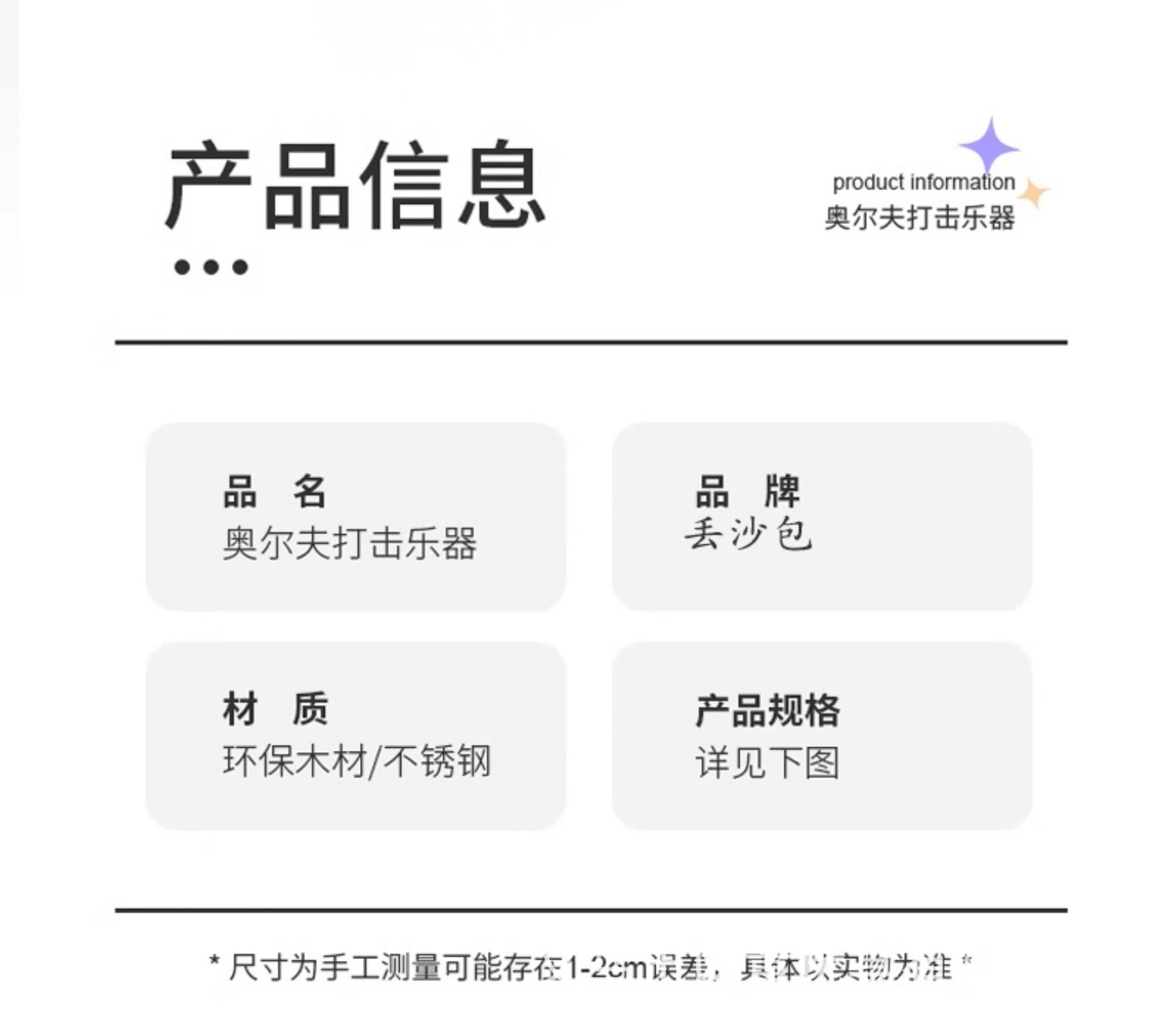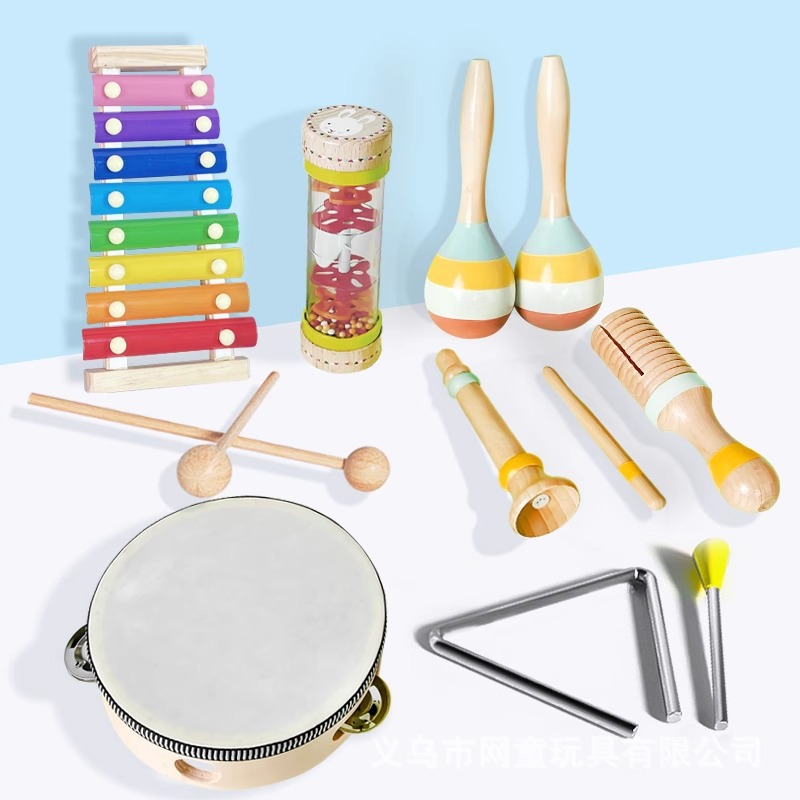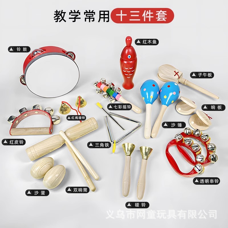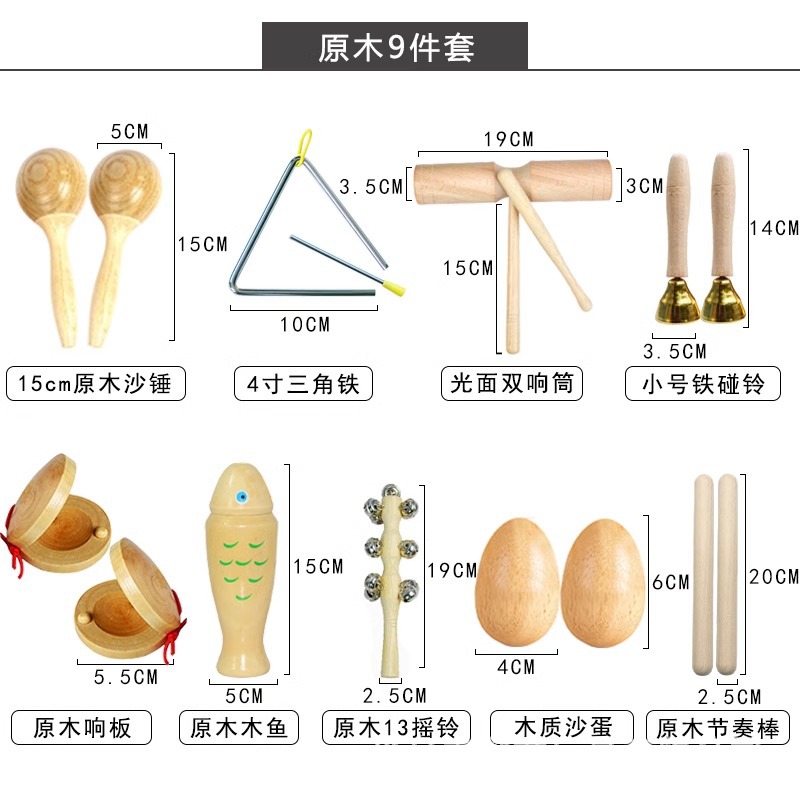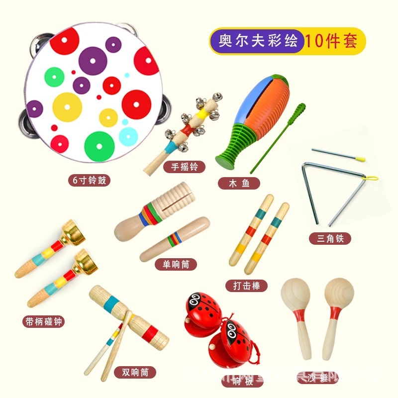 유치원 Orff Percussion 어린이 음악 교육 원조 트라이앵글 링 보드 샌드 해머 탬버린 더블 링 드럼 벨