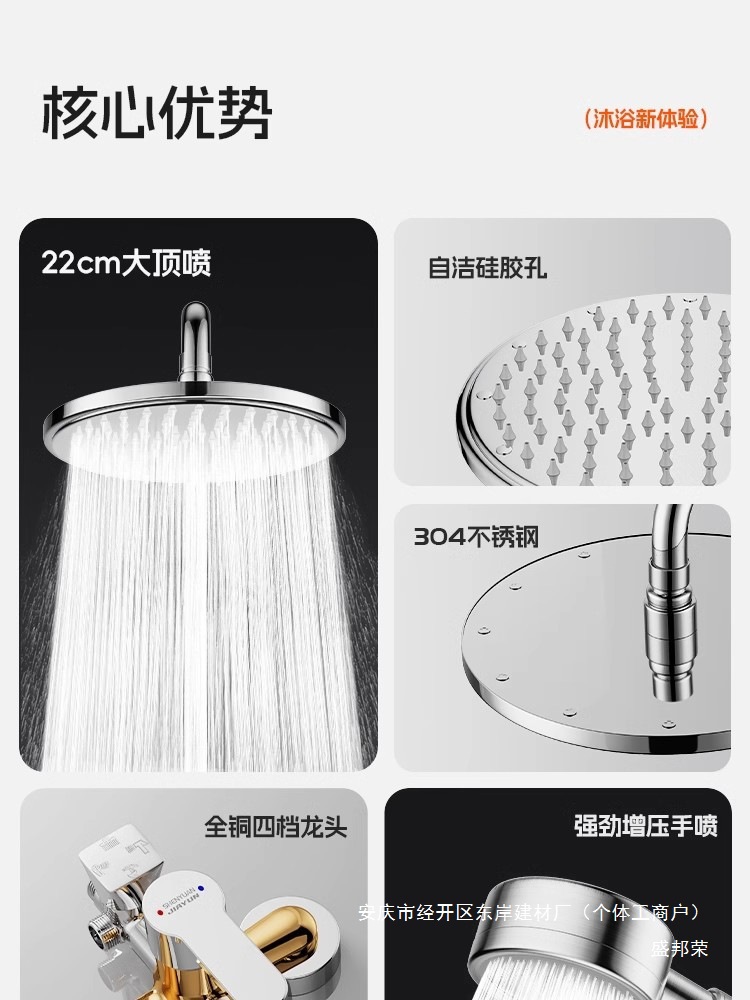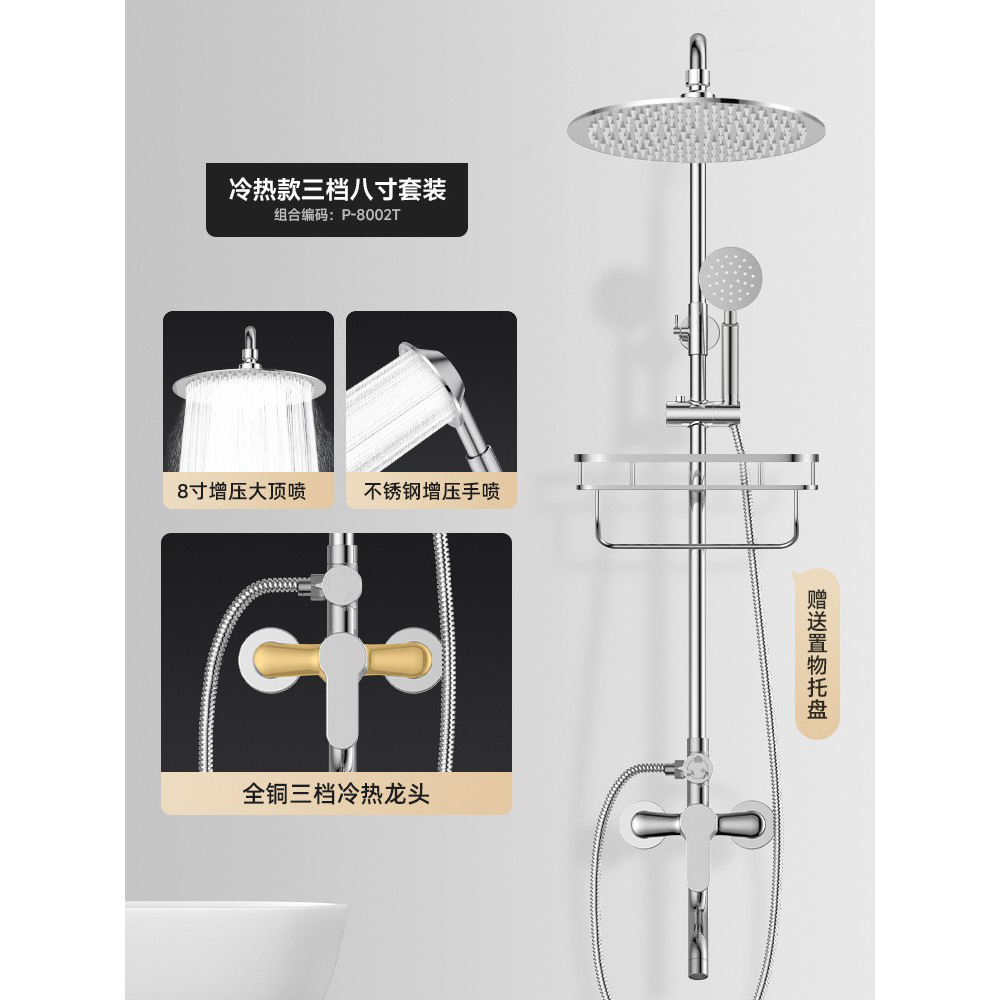 모든 구리 샤워 샤워 스테인레스 스틸 가정용 온도 조절기 수도꼭지 가압 레인 샤워 세트 욕실 욕조 No스토어 가기