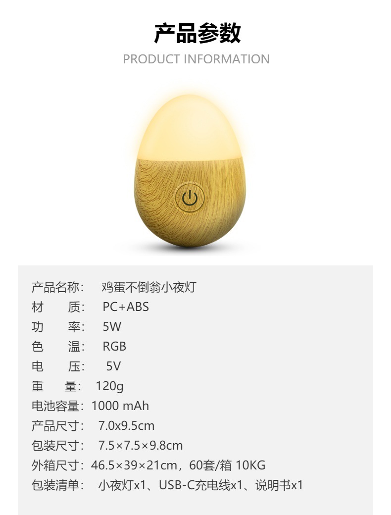 RGB 충전식 계란 밤 빛 침대 옆 테이블 램프 창조적 인 장식 텀블러 분위기 빛 침실 수면 밤 빛
