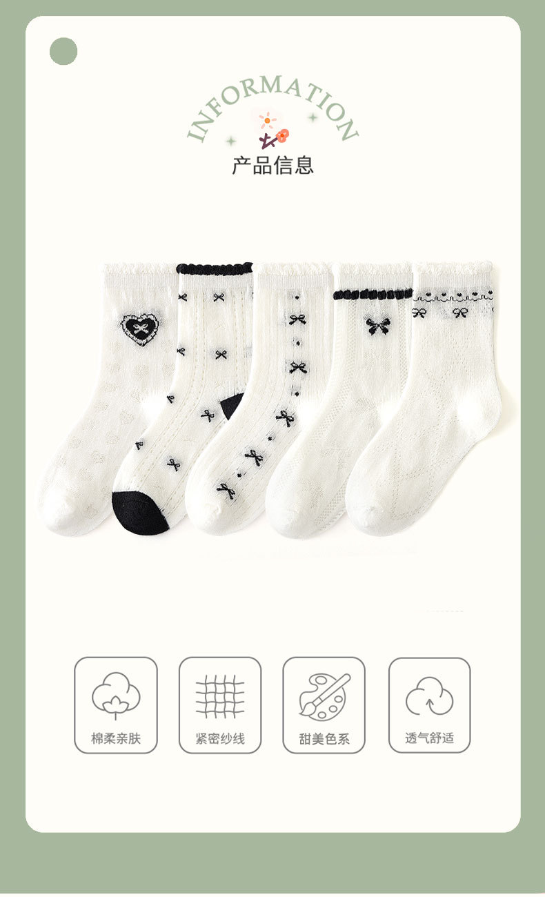 두리안 여름 소녀 양말 얇은 흑백 나비 메쉬 코튼 양말 통기성 달콤한 공주 바람 어린이 양말