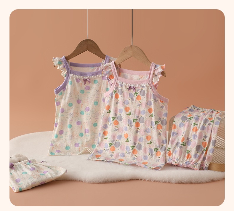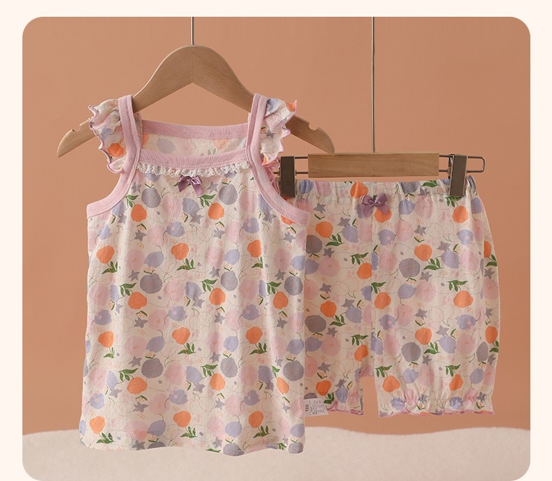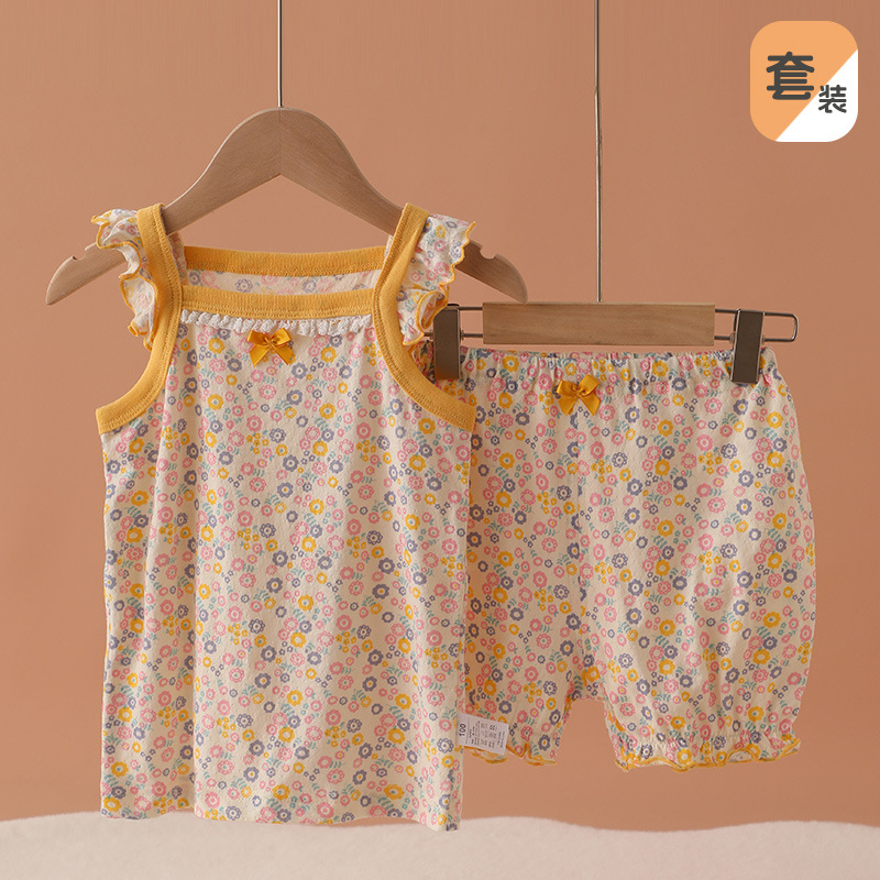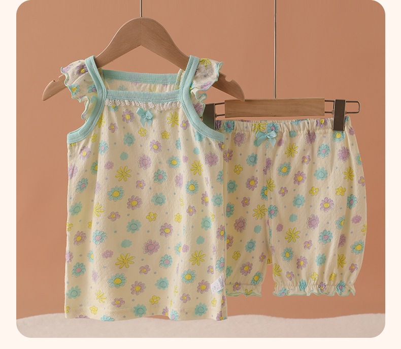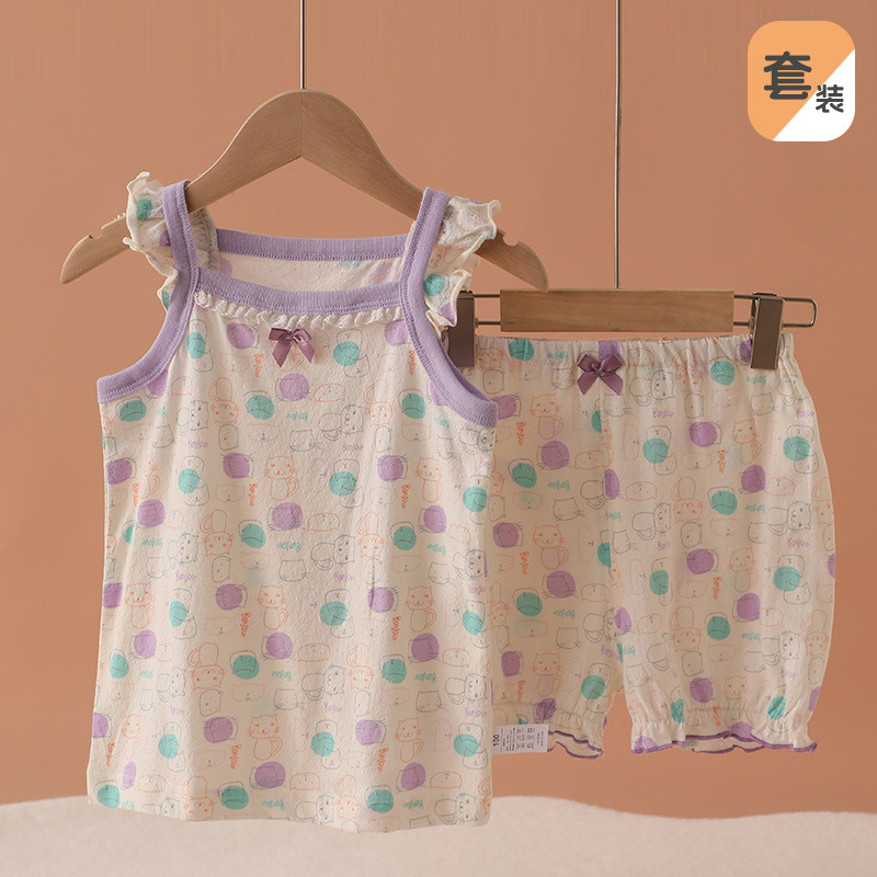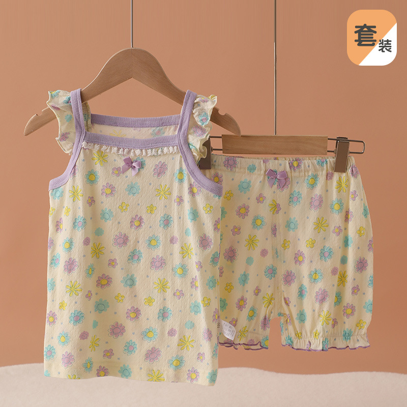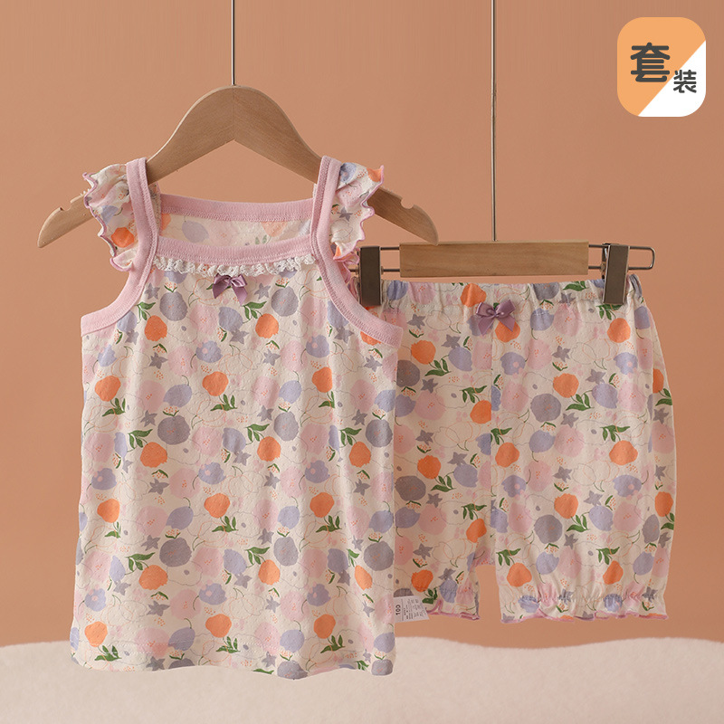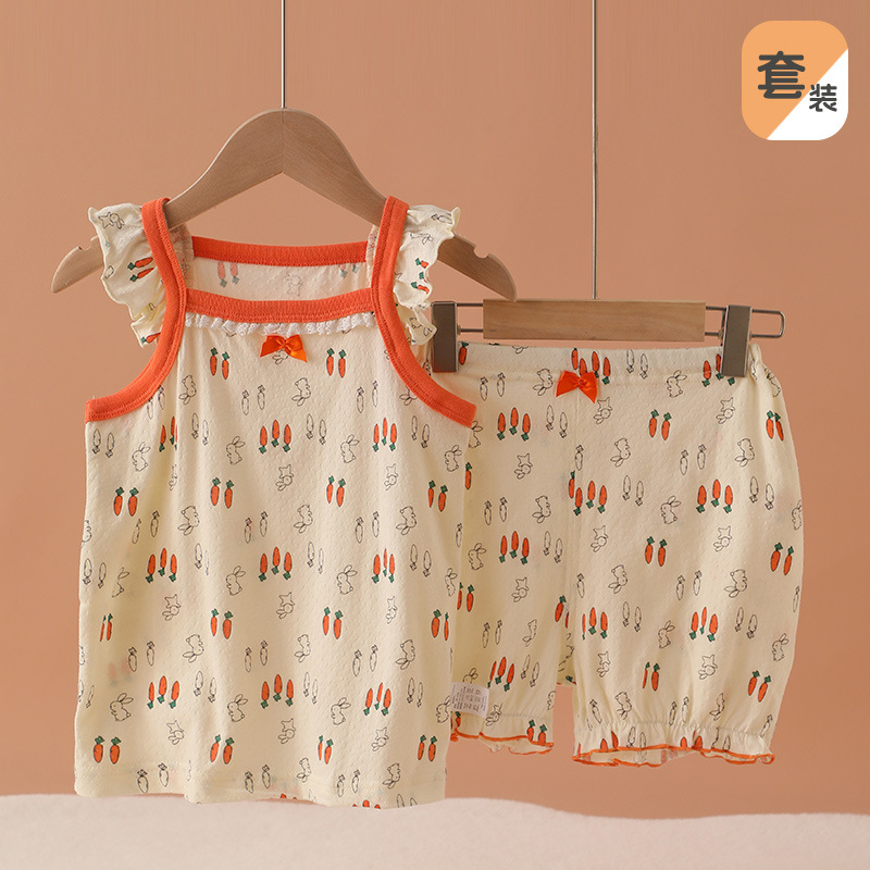 메쉬 통기성 소녀 슬링 반바지 세트 여름 얇은 소녀 홈 옷 민소매 파자마 순면 클래스 A스토어 가기