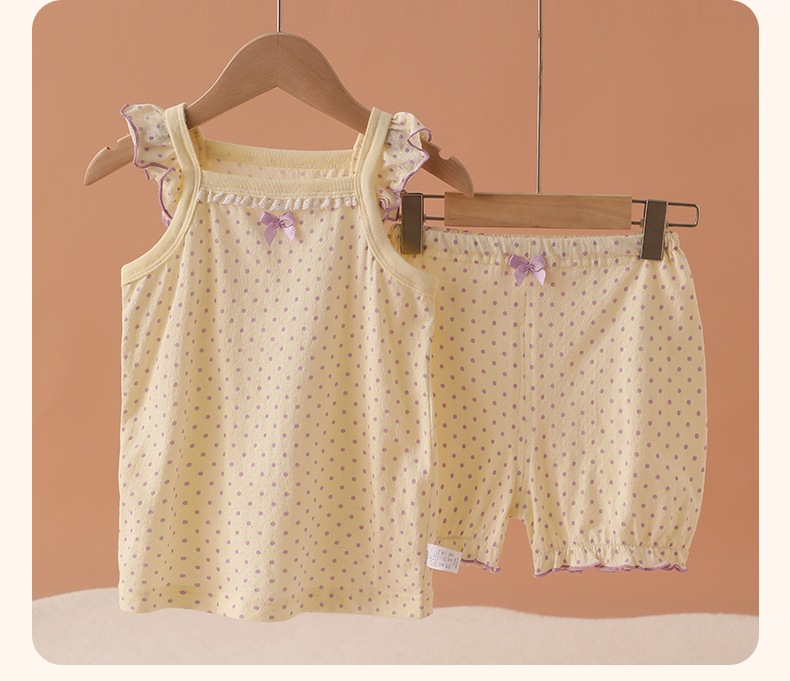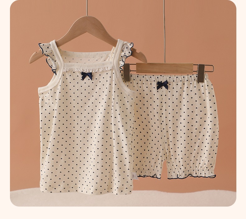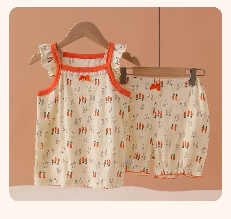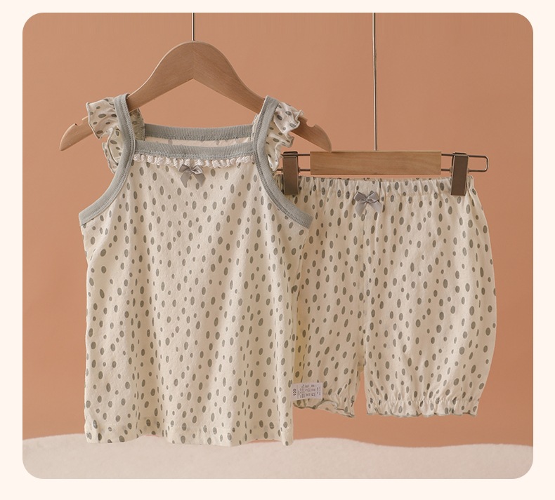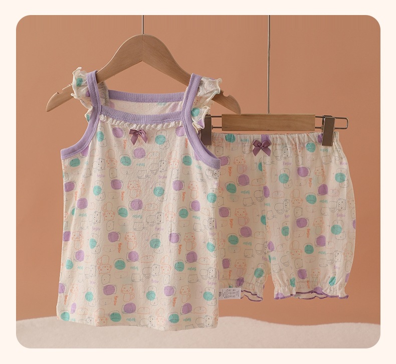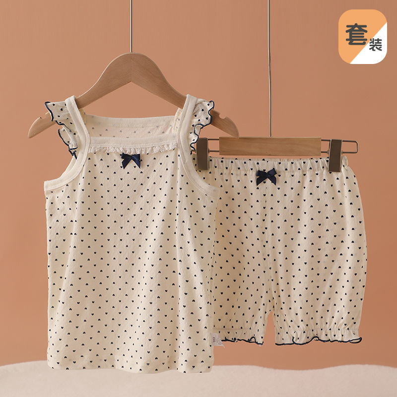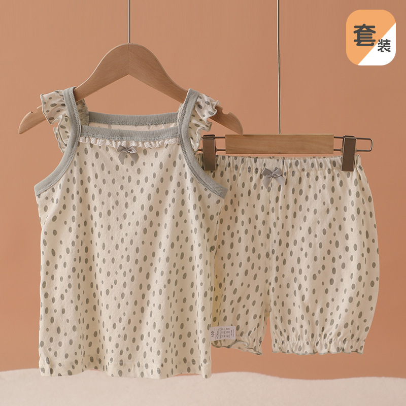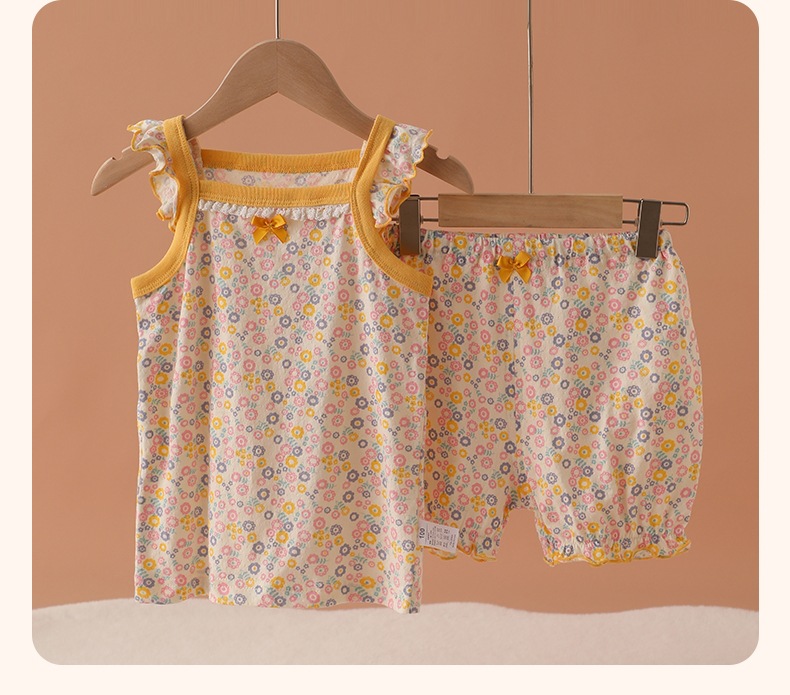 메쉬 통기성 소녀 슬링 반바지 세트 여름 얇은 소녀 홈 옷 민소매 파자마 순면 클래스 A스토어 가기