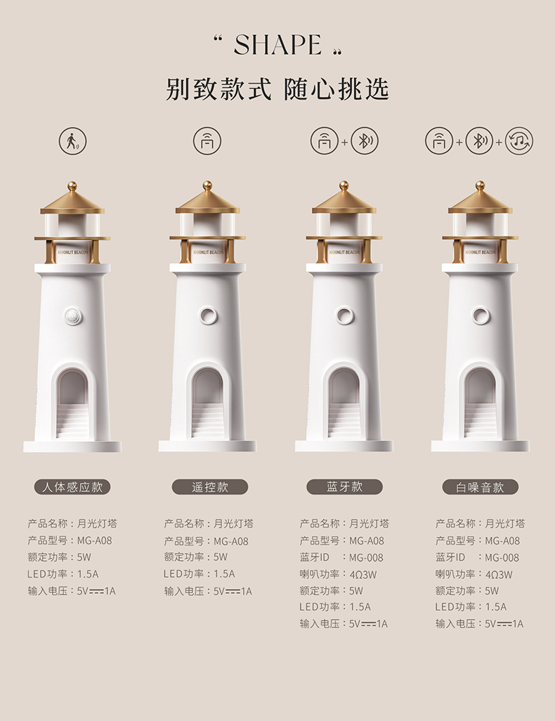 产品款式:人体感应款、遥控款、蓝牙音箱款