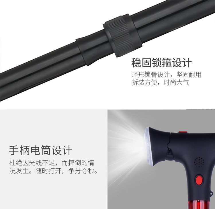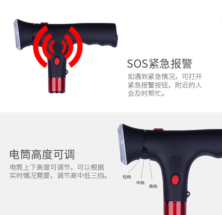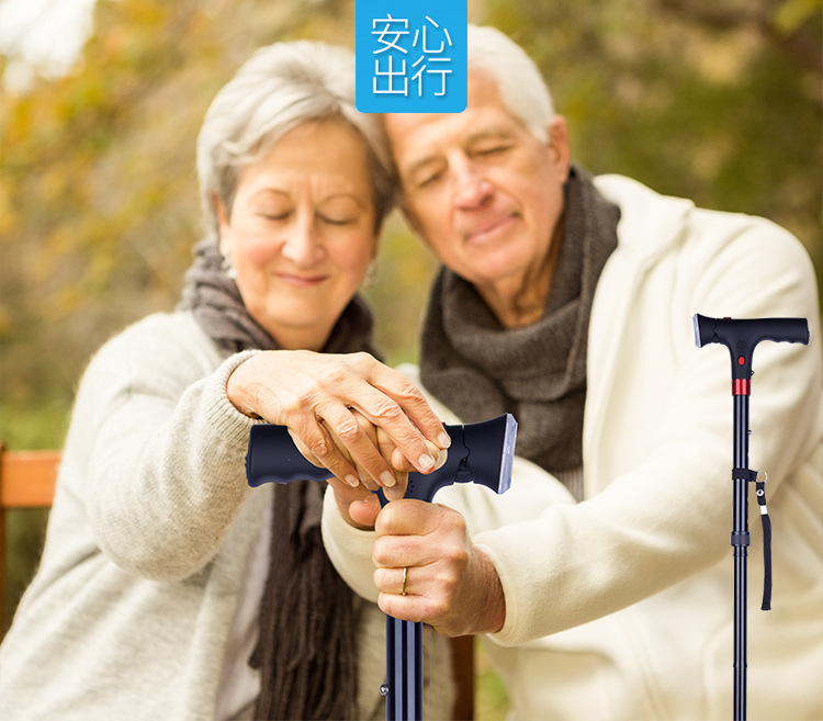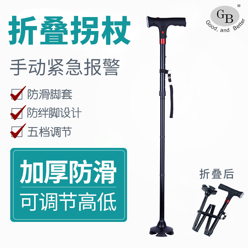 국경 간 뜨거운 판매 더블 팔걸이 매직 폴딩 텀블러 알람 목발 노인을위한 5 섹션 망원경 목발스토어 가기