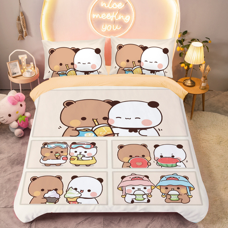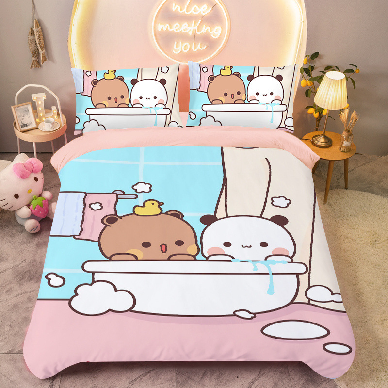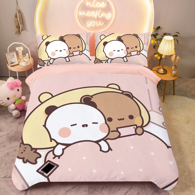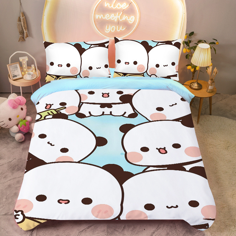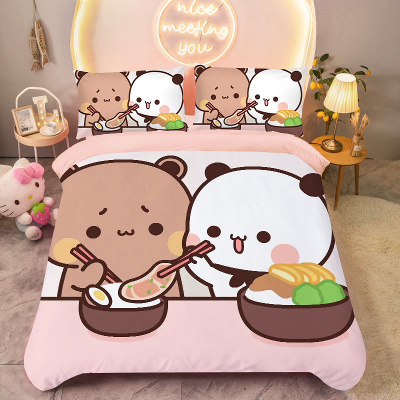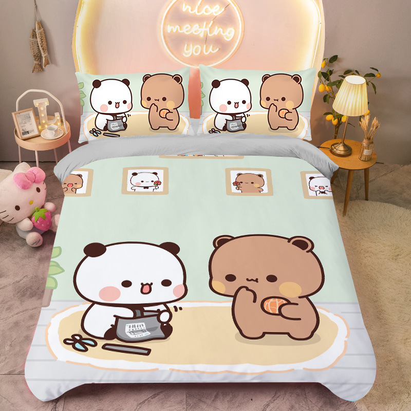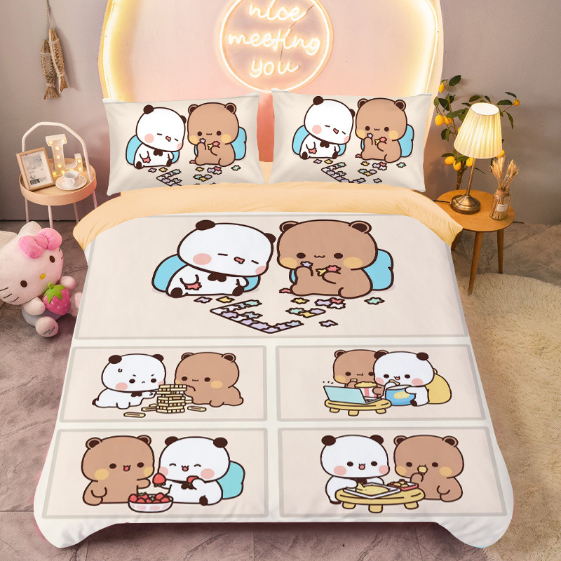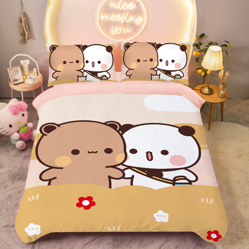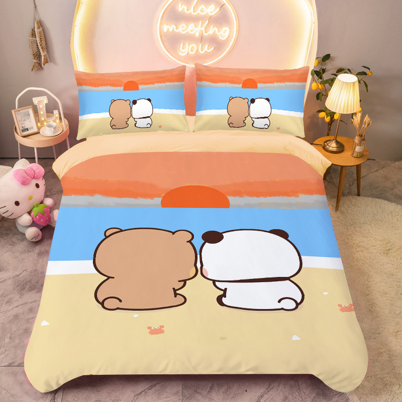 2 천 크리스탈 벨벳 4 종 세트 커플 팬더 만화 두꺼운 3 종 세트 겨울 퀼트 커버 어린이 침실