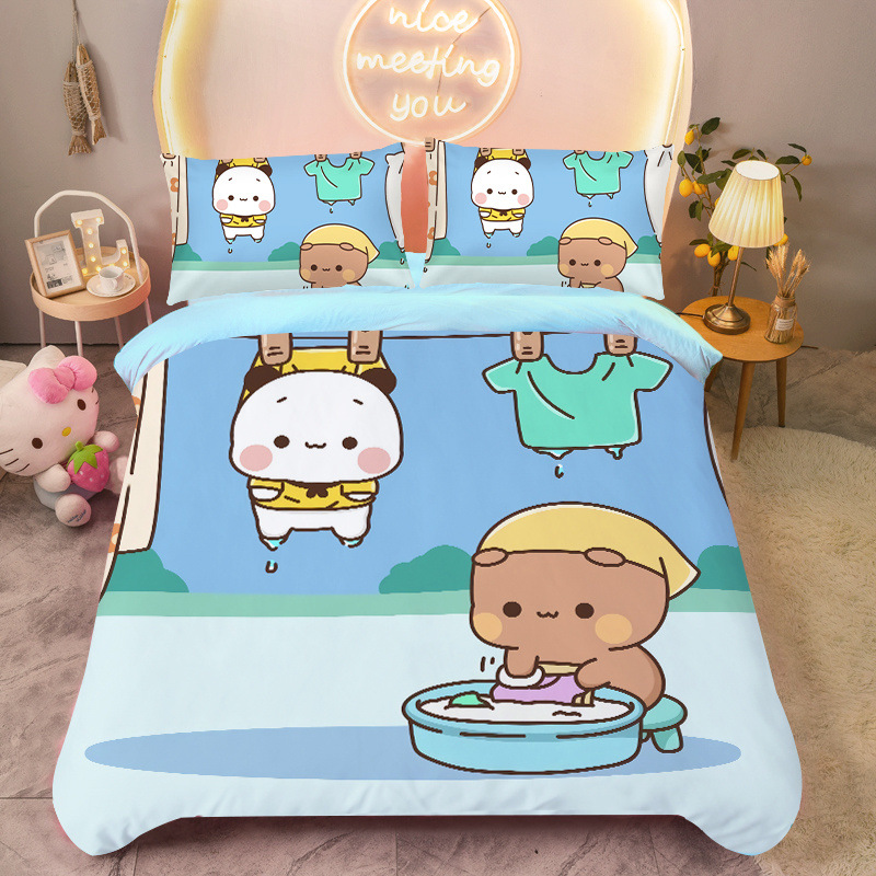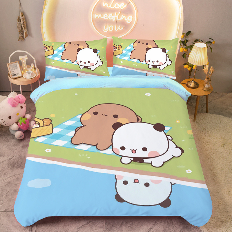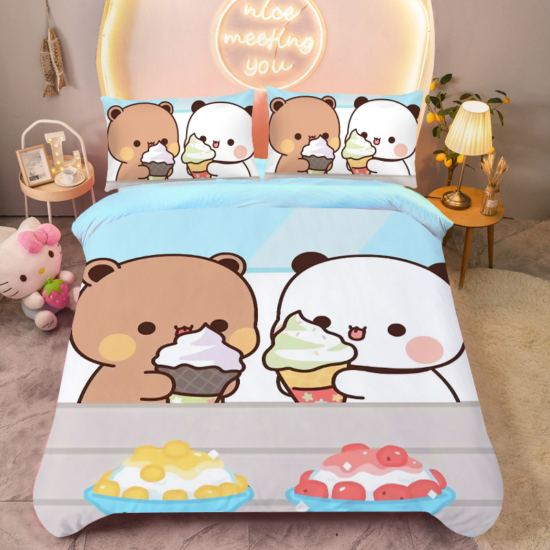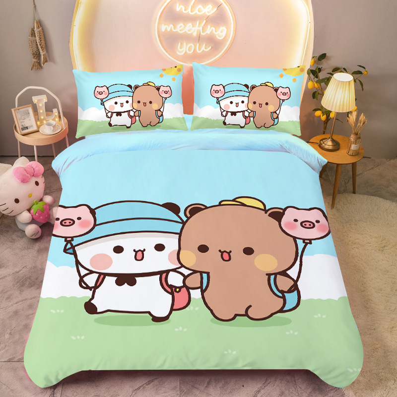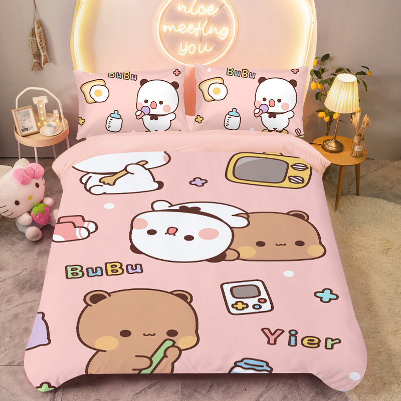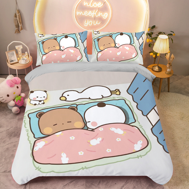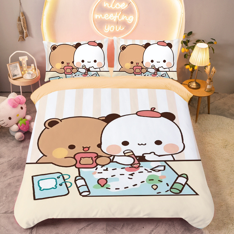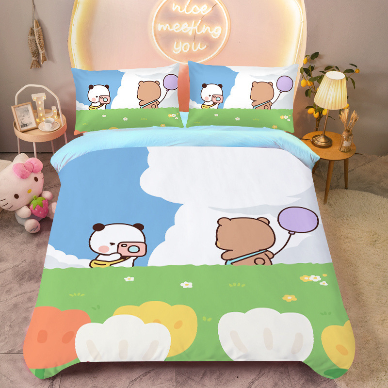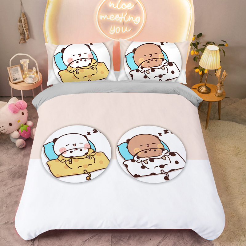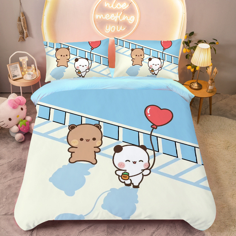 2 천 크리스탈 벨벳 4 종 세트 커플 팬더 만화 두꺼운 3 종 세트 겨울 퀼트 커버 어린이 침실