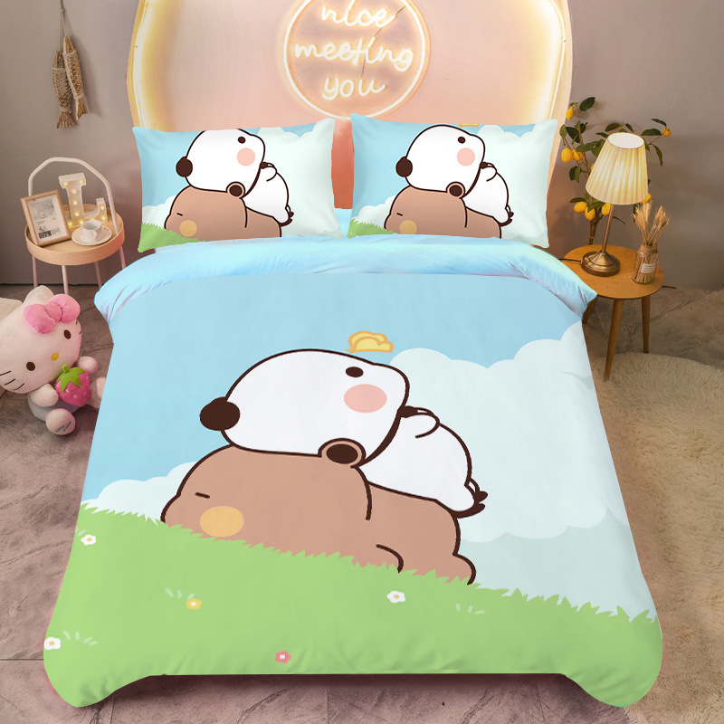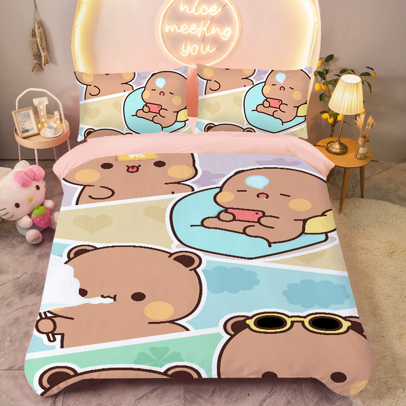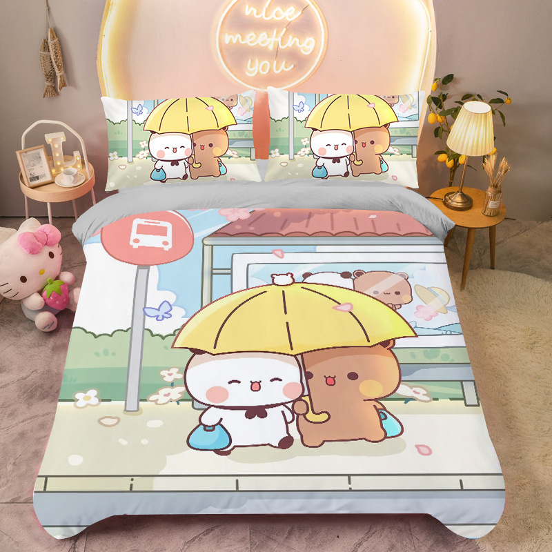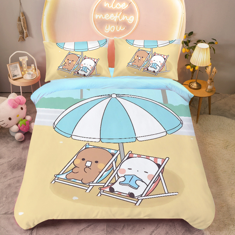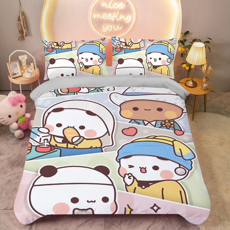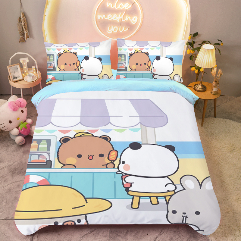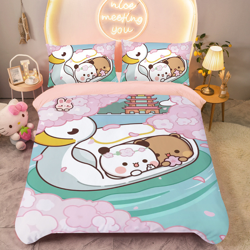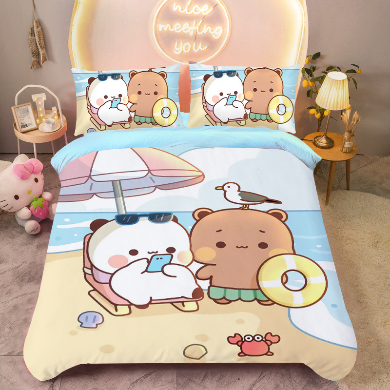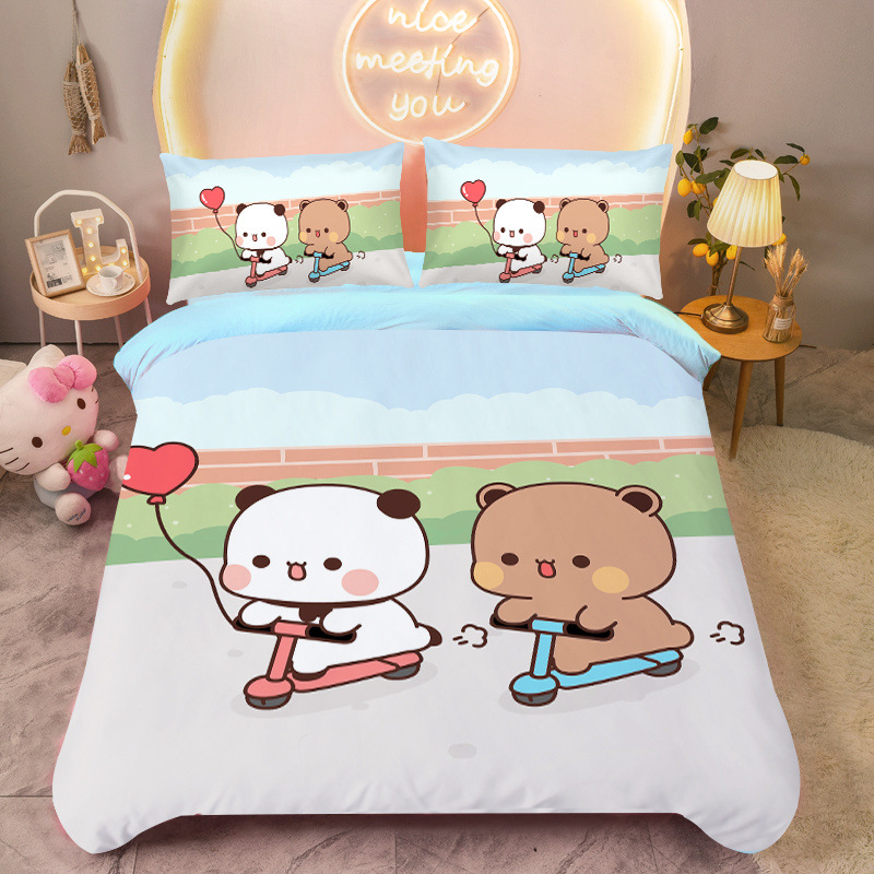 2 천 크리스탈 벨벳 4 종 세트 커플 팬더 만화 두꺼운 3 종 세트 겨울 퀼트 커버 어린이 침실