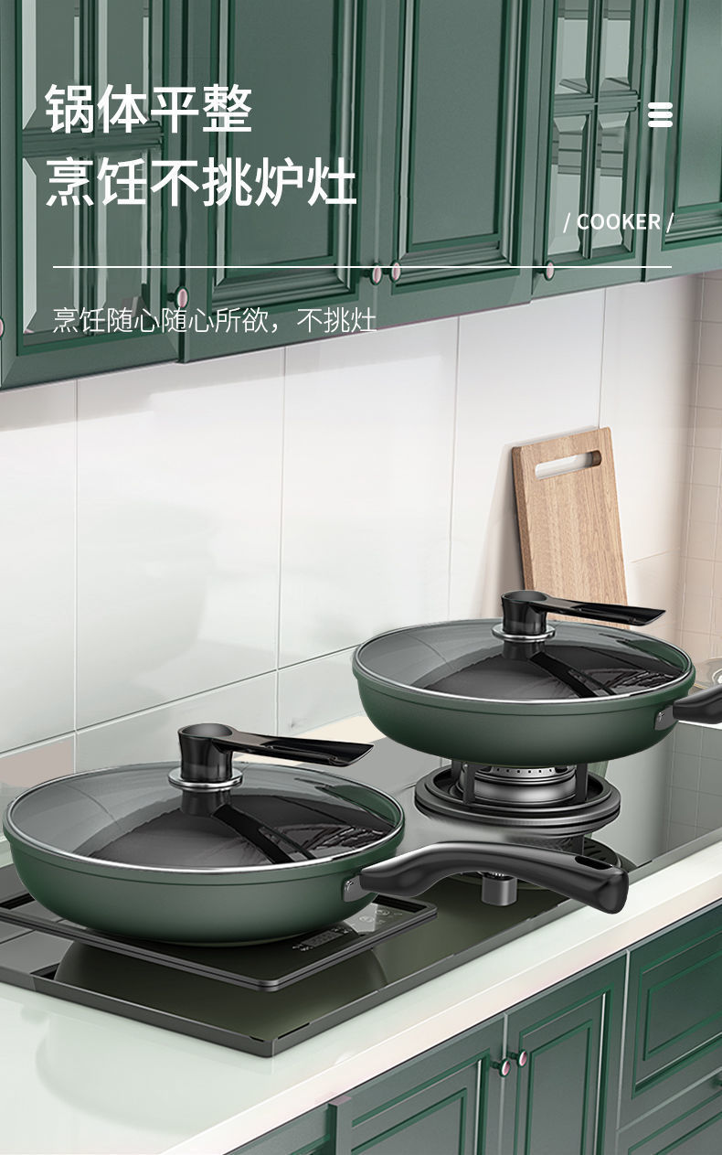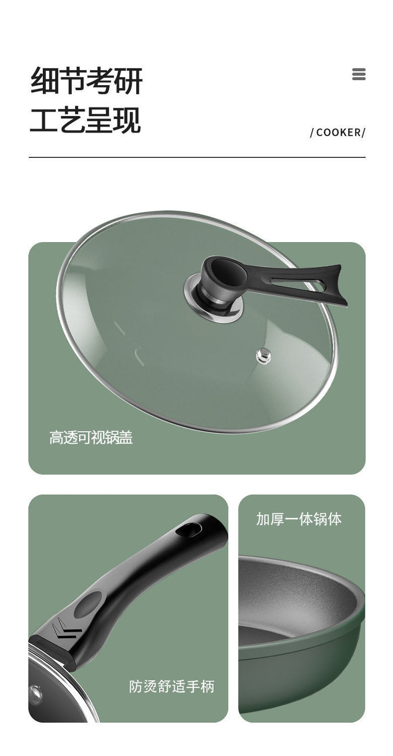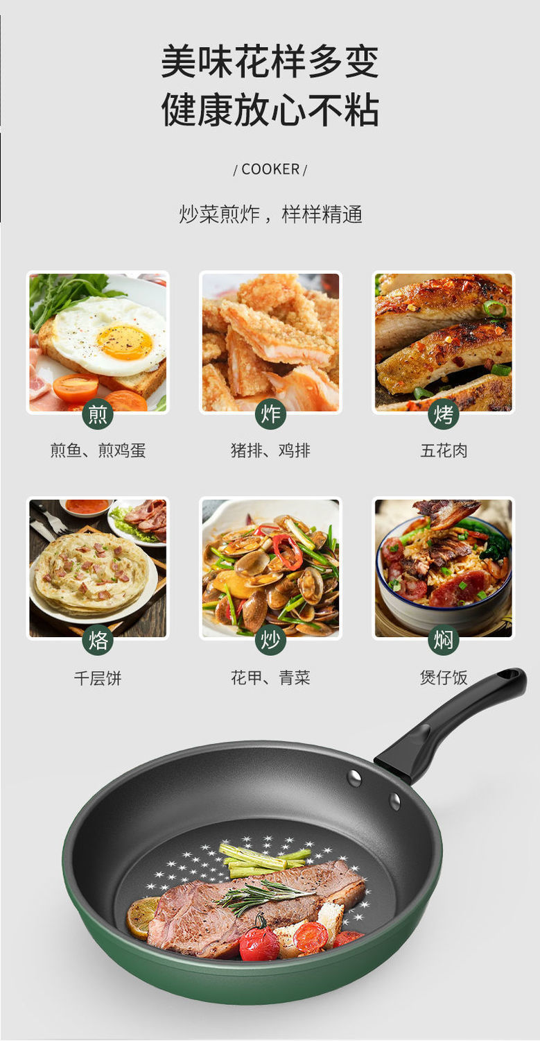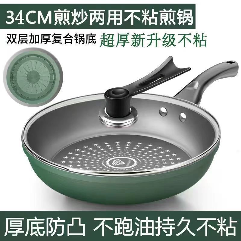 • 업그레이드된 논스틱 그린 크리스탈 두꺼운 프라이팬 [26 뚜껑 없음]