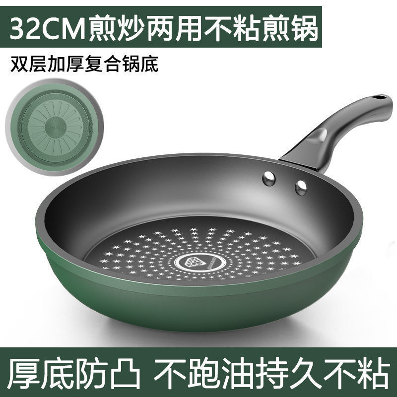 • 업그레이드된 논스틱 그린 크리스탈 다이아몬드 초두꺼운 프라이팬 [32 뚜껑 없음]