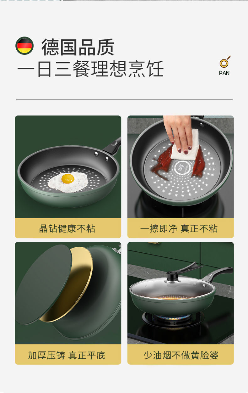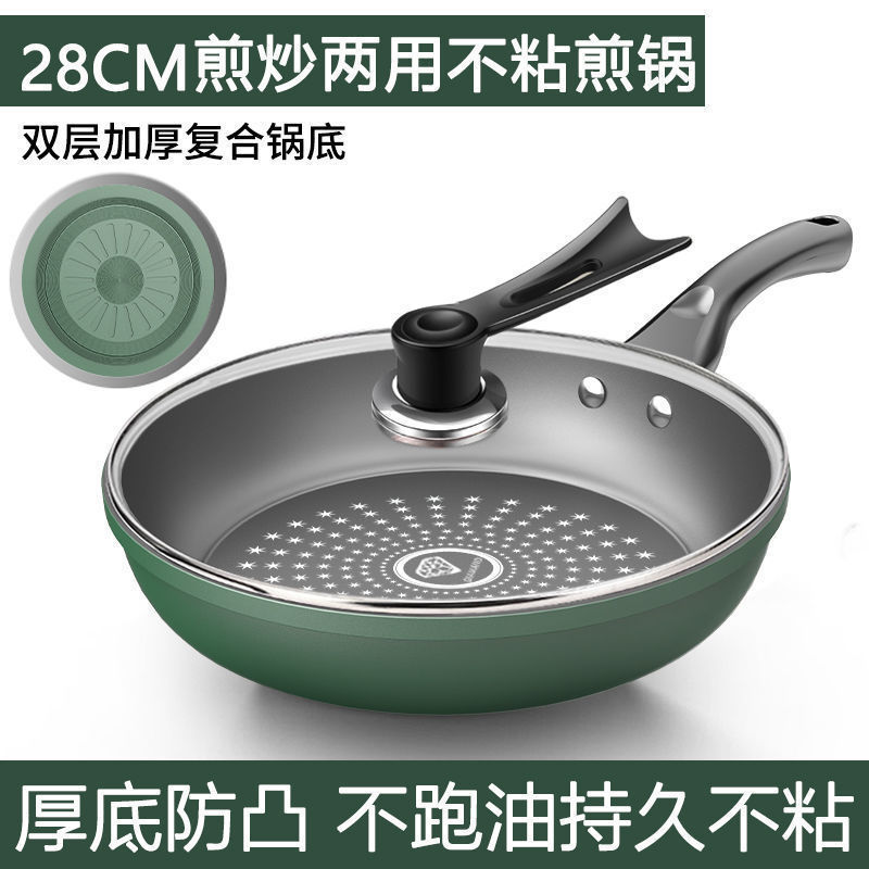 • 업그레이드된 논스틱 그린 크리스탈 다이아몬드 두꺼운 프라이팬 [28+ 뚜껑]