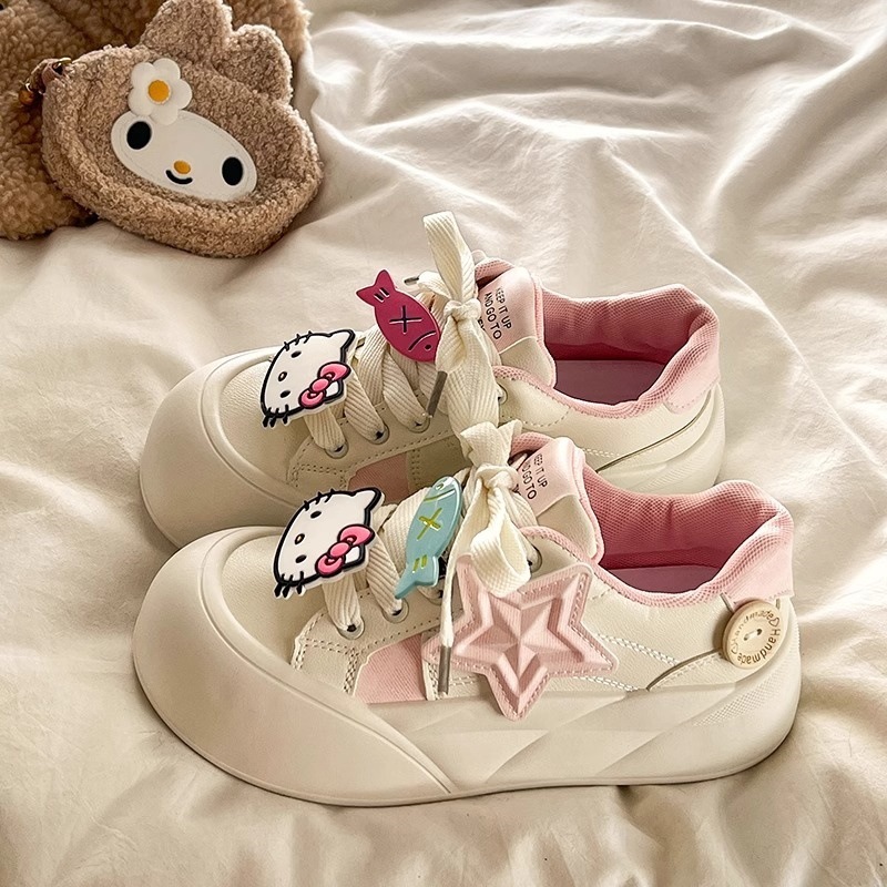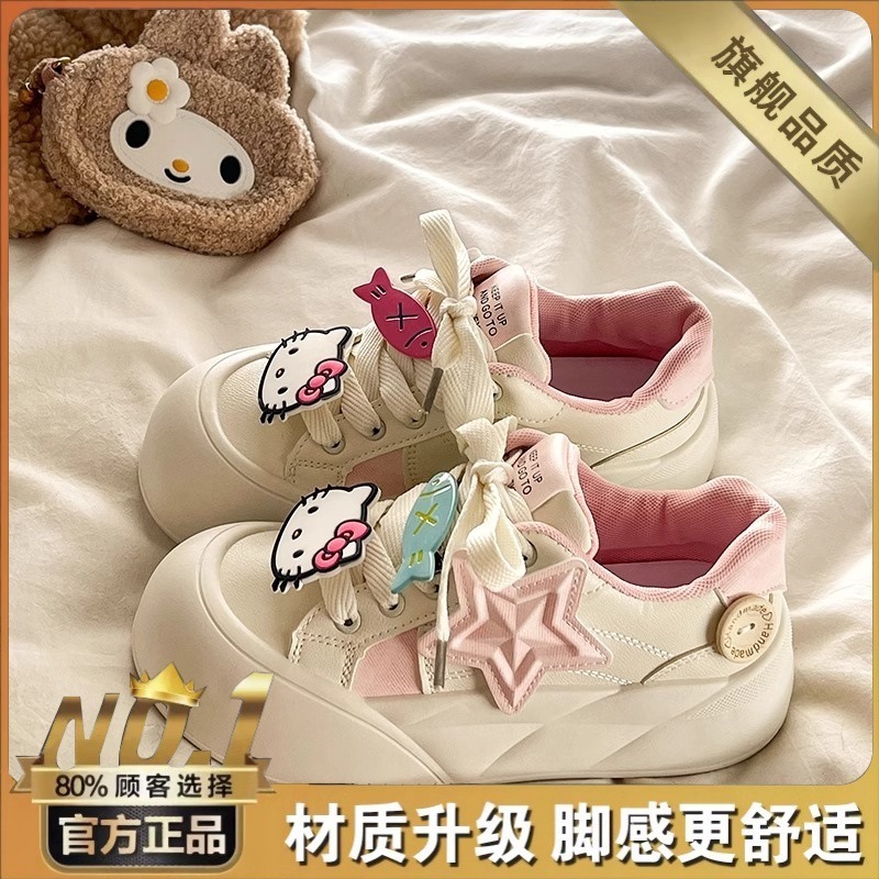 2025 봄 새로운 추악한 귀여운 큰 머리 작은 흰색 신발 여학생 인기 캐주얼 빵 신발 올매치 스타 보드 신발스토어 가기
