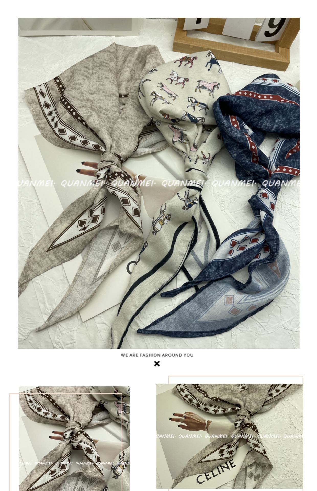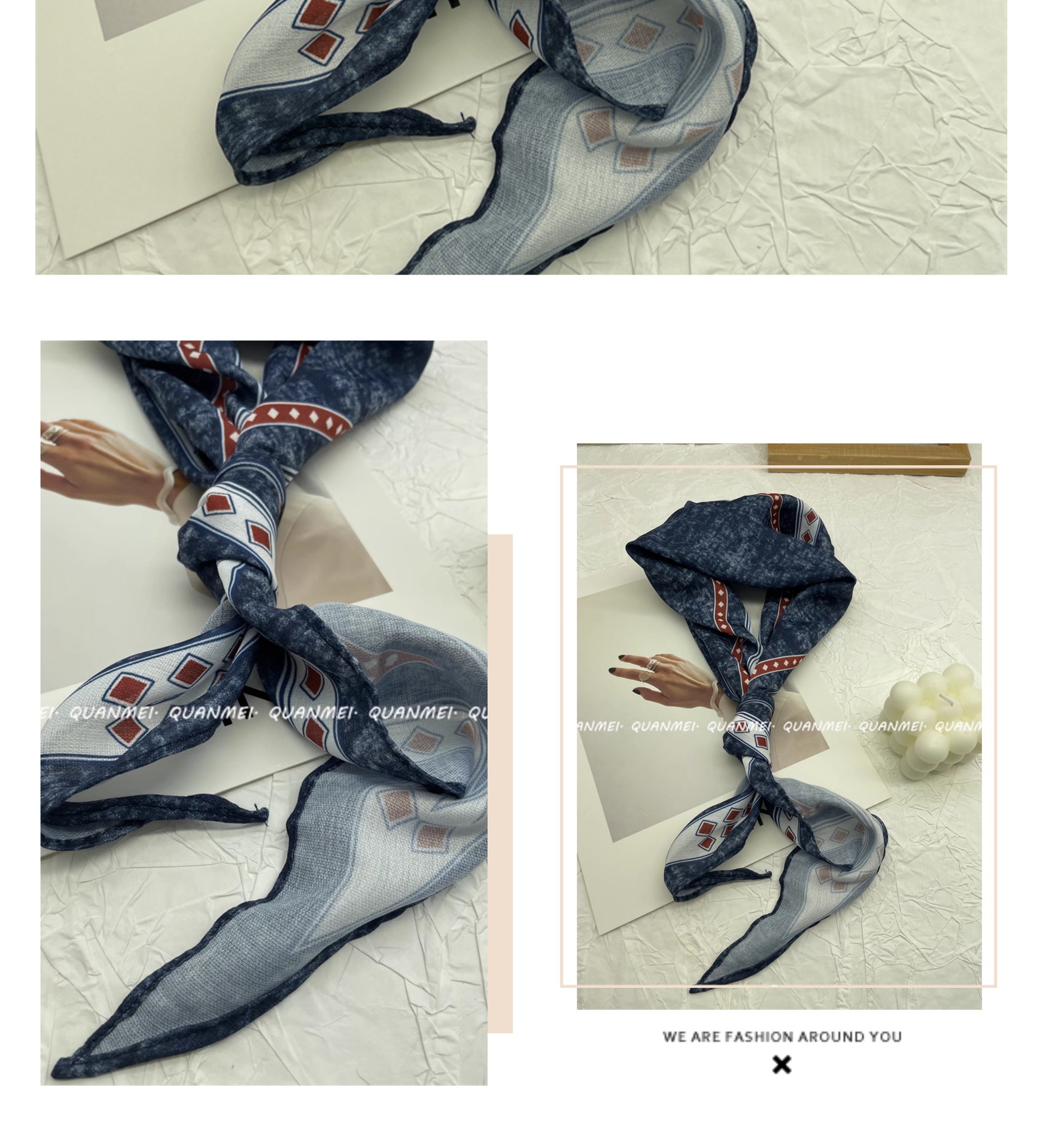 일본과 한국의 새로운 스타일 실크 스카프 헤어 벨트 포니 코튼 스카프 빈티지 스카프 신선한 예술적 패션 가방 스카프 삼각형 스카프