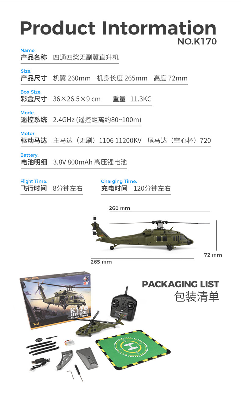 • Weili K170(Black Hawk UH-60L) 4방향 4프로펠러 Flybarless 헬리콥터