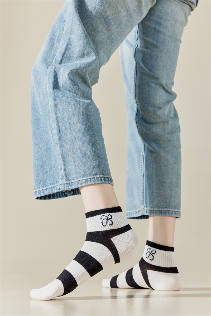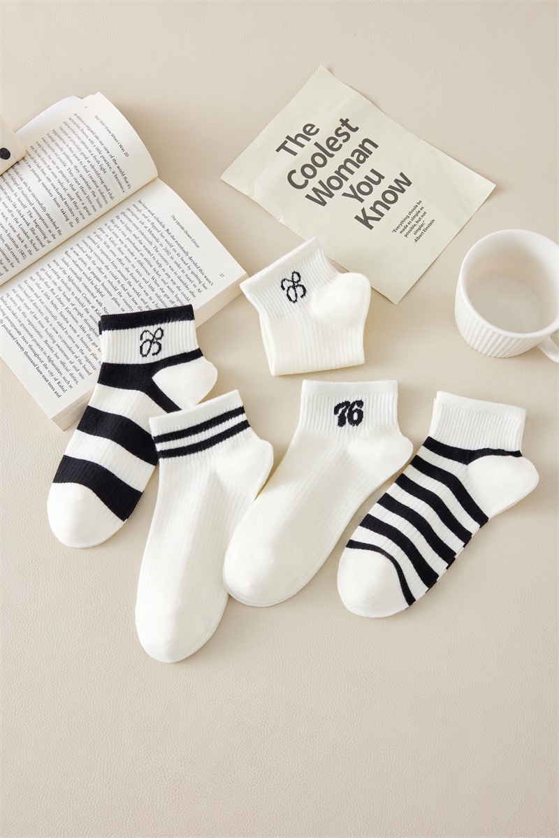 밀크 화이트 양말 여성의 여름 양말 통기성 땀 흡수성 클래식 흑백 줄무늬 여성 양말 학생 캐주얼 양말스토어 가기