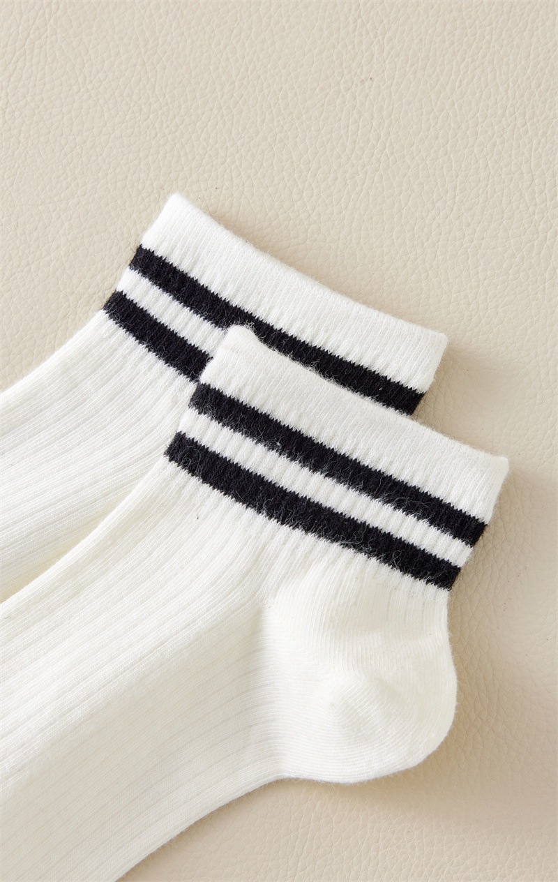 밀크 화이트 양말 여성의 여름 양말 통기성 땀 흡수성 클래식 흑백 줄무늬 여성 양말 학생 캐주얼 양말