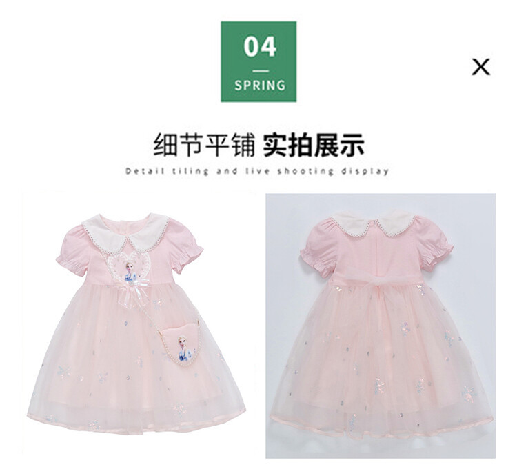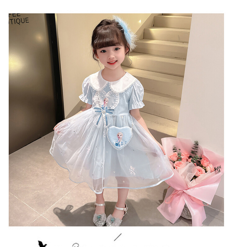 엘사 공주 원피스 소녀의 여름 원피스 어린이 인형 칼라 유행 냉동 엘사 메쉬 원피스 트렌디스토어 가기