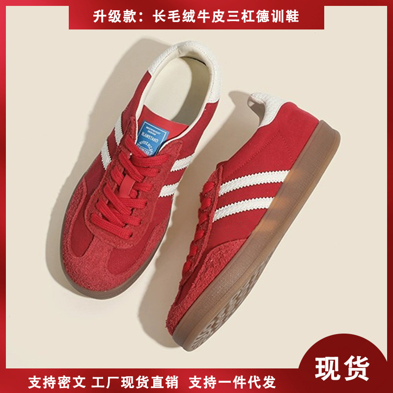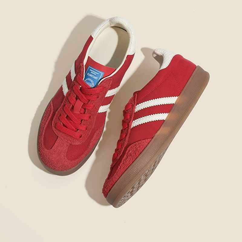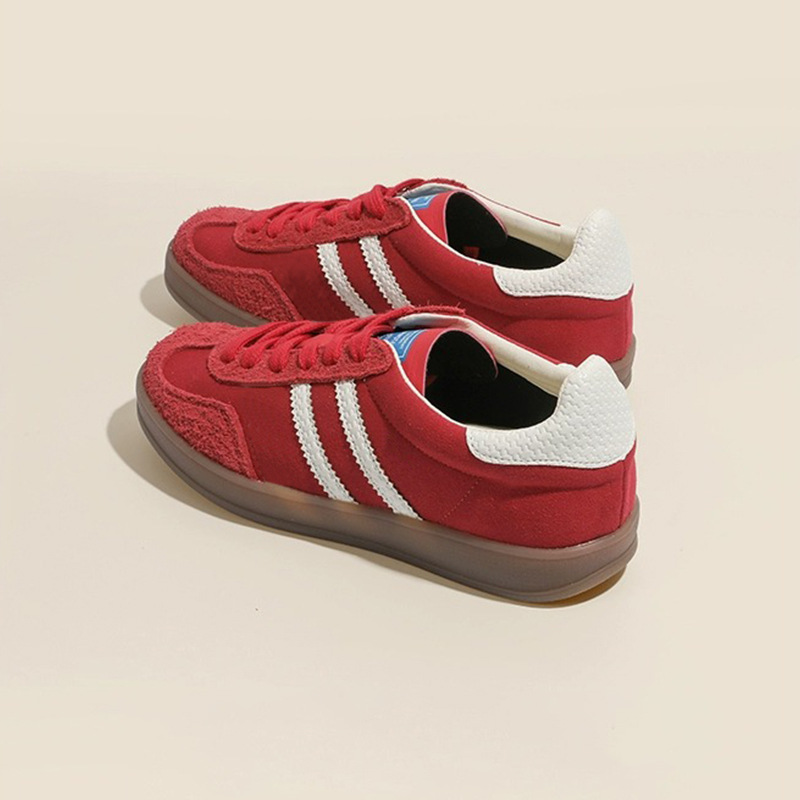 2025 새로운 레드 트레이닝 신발 여성 플랫 하단 올매치 강화 캐주얼 신발 3 바 카우보이 트레이닝 신발 여성 신발스토어 가기